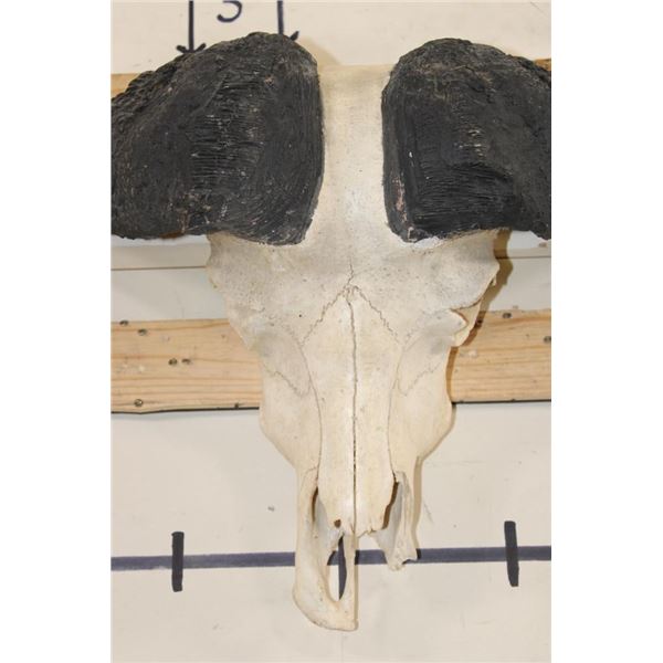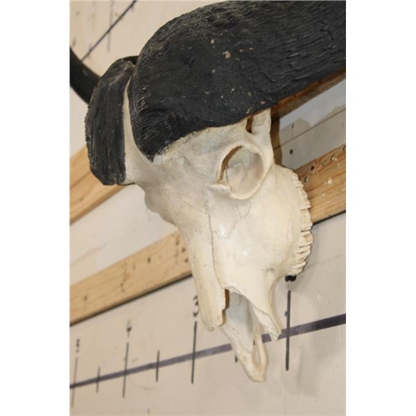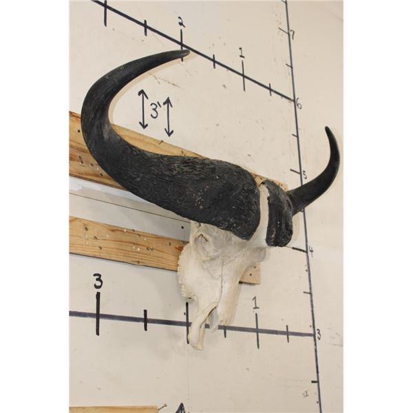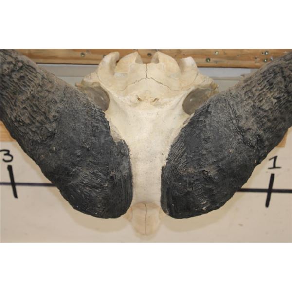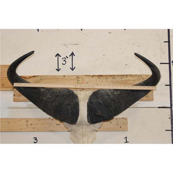 CAPE BUFFALO Skull with a 38.25" Spread and All its Teeth and a Wire Hanger. It has nose cone damage. TAXIDERMY