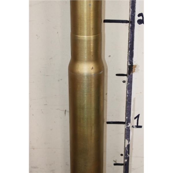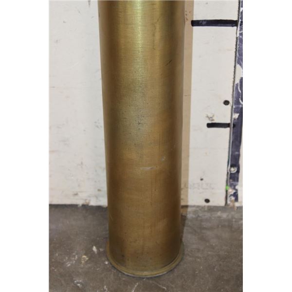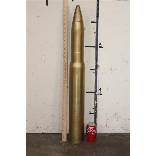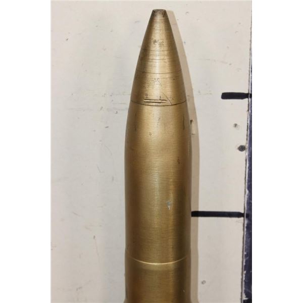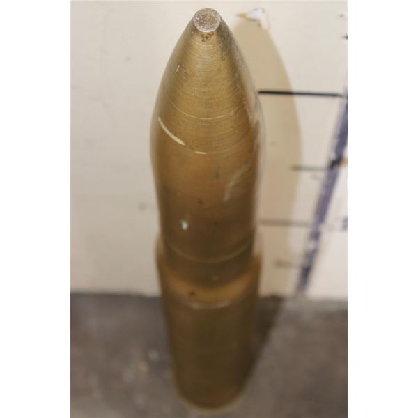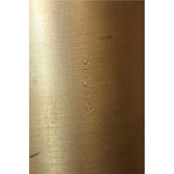 Orignial U.S. Miliary Inert 90mm Artillery Shell made of Brass. It measures 34.75" Tall x 4.25" Base Diameter and the Total Weight is 25 lbs 6 oz. The bottom is labeled "MK8 Mod. 1", "713988-0", and "SHCORP". The 90mm gun was a significant anti-aircraft and anti-tank gun used by the U.S. during WWII into 1946. COLLECTIBLE WW2 MEMORABILIA