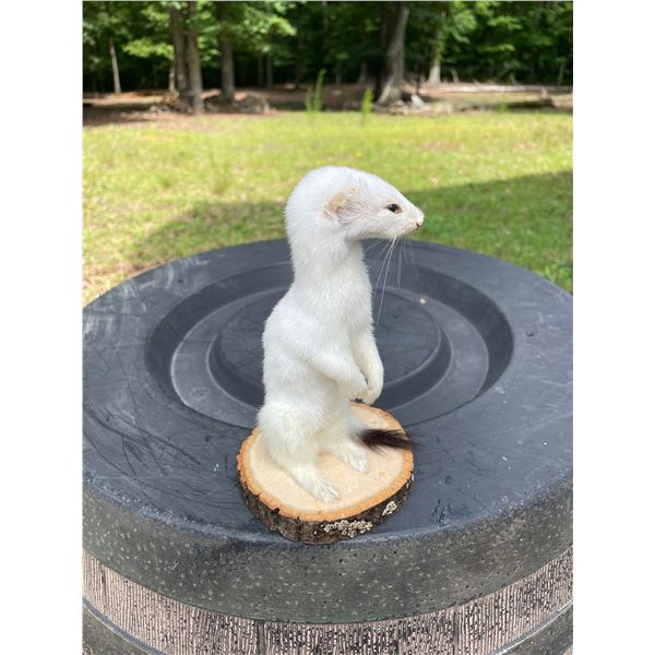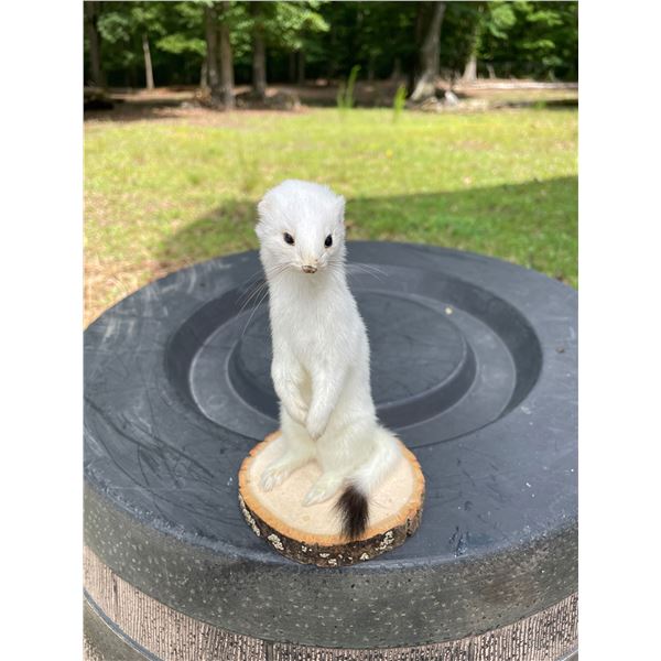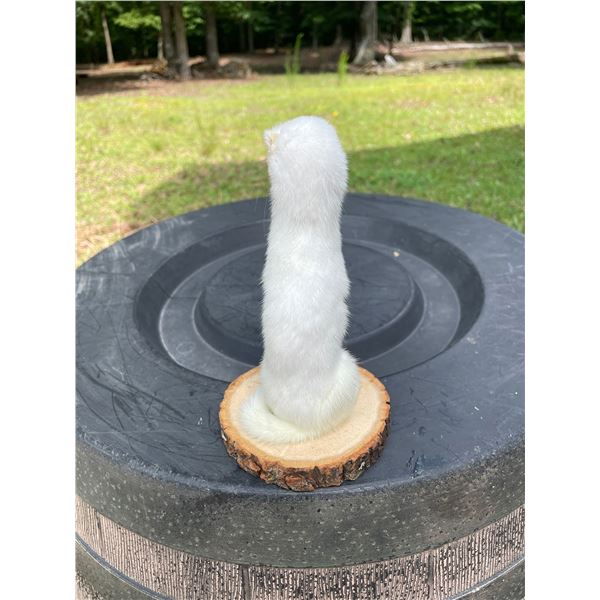 *New* Adorable little Snow White WEASEL or ERMINE. It is on a 4" Long x 4" Wide Wood Slice Base and measures 7" Tall. TAXIDERMY