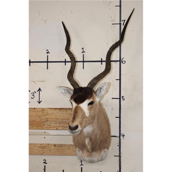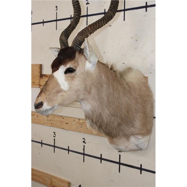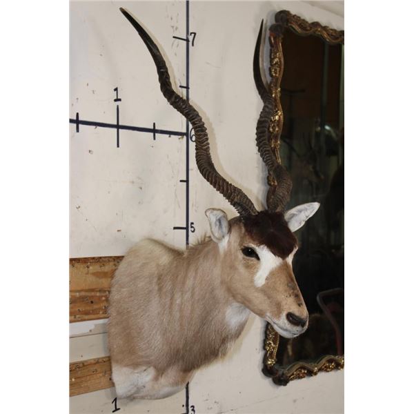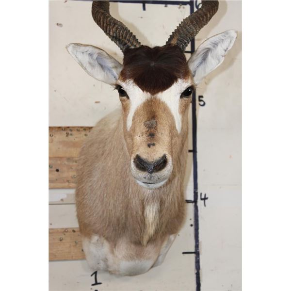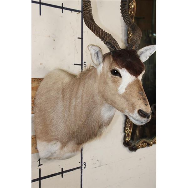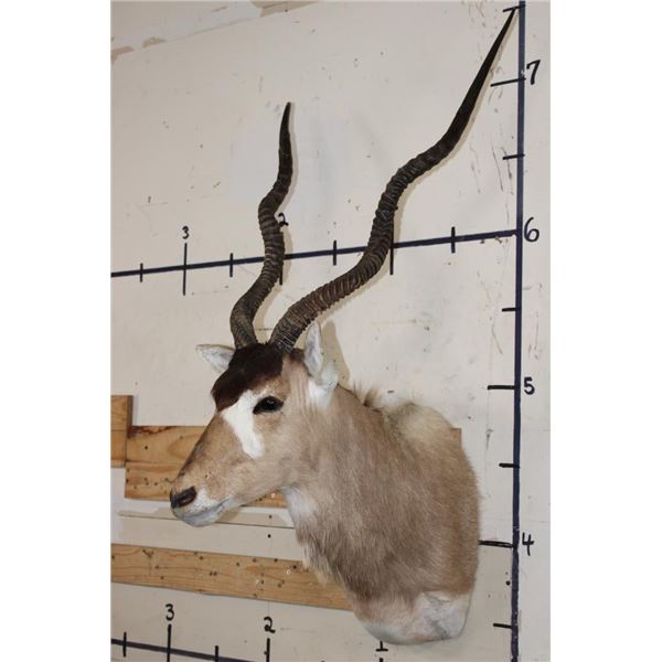 *TEXAS RESIDENTS ONLY*! Very Nice, Clean, and Newer ADDAX Shoulder Mount. This is a Big guy! The Left Horn measures 34 3/8" around the spiral ridge and the Right Horn measures 31 5/8" around the spiral ridge. He is in Very Good Condition. TAXIDERMY