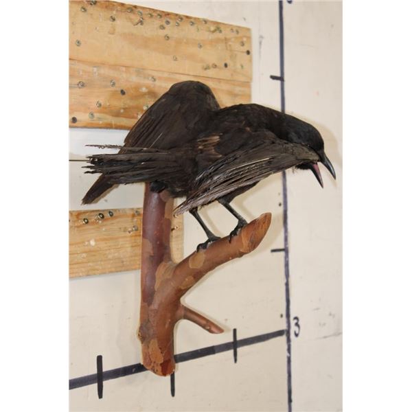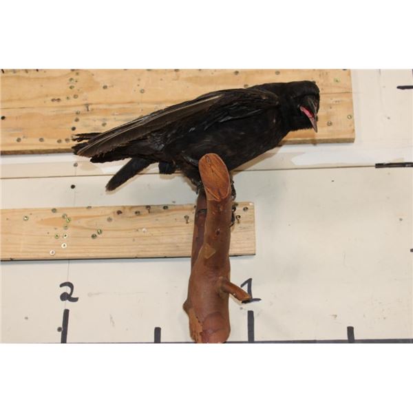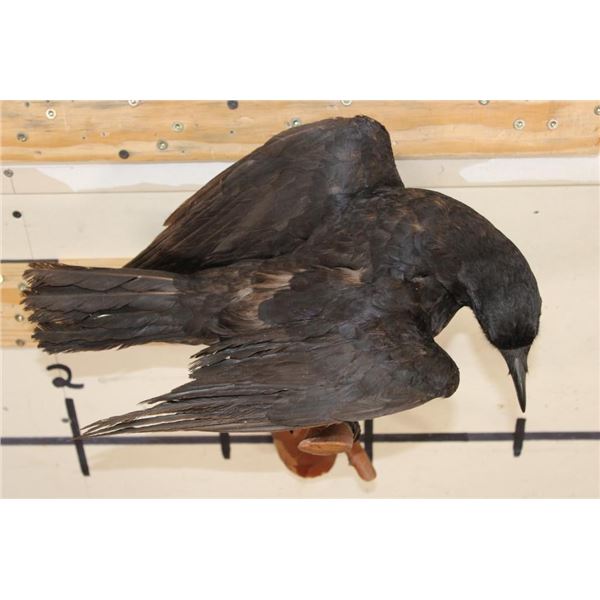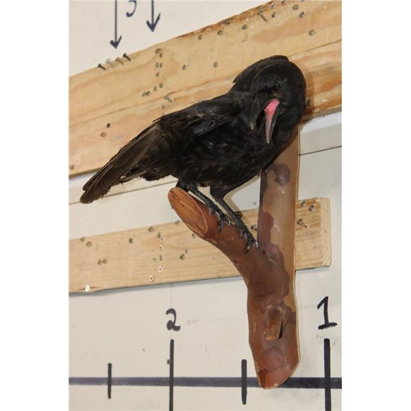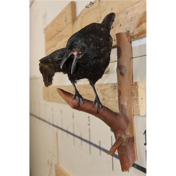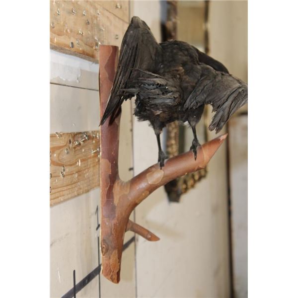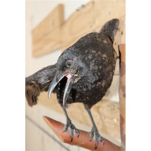 *Rarely Seen* Life-sized CARRION CROW Mounted on a Wooden Perch. It measures 17" Tall x 15.5" Wide x 10" Deep. The Carrion Crow is native to western Europe and the eastern Paleartic. TAXIDERMY BIRDS