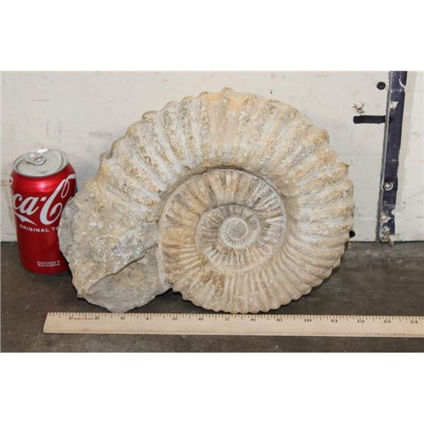 XL AMMONITE Fossil Specimen from Morocco. It measures 12" Long x 9" Wide x 4" Thick and the Total Weight is 17 lbs 3 oz. This Ammonite fossil is the preserved remains of an extinct marine mollusk, specifically a coiled cephalopod, related to squid and octopuses. ROCKS MINERALS FOSSILS