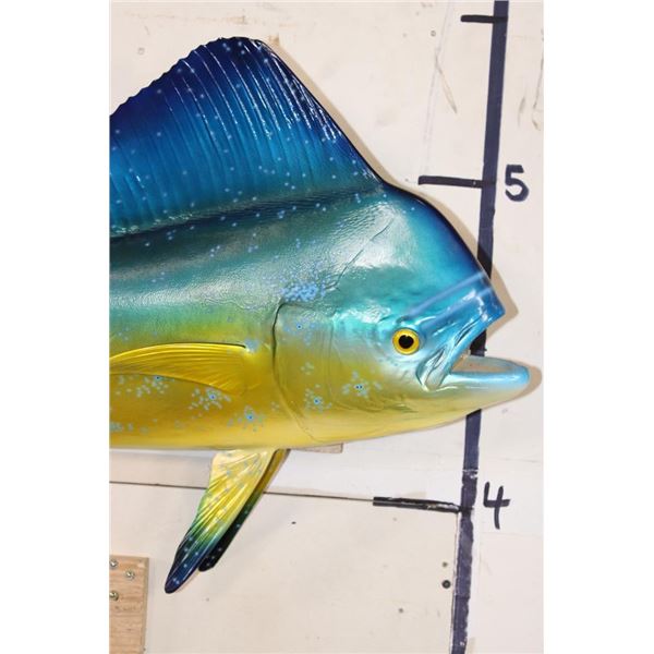 Very Nice reproduction MAHI MAHI Fish with vibrant colors. It measures 45.75" Long and is in Very Good Condition. TAXIDERMY FISH