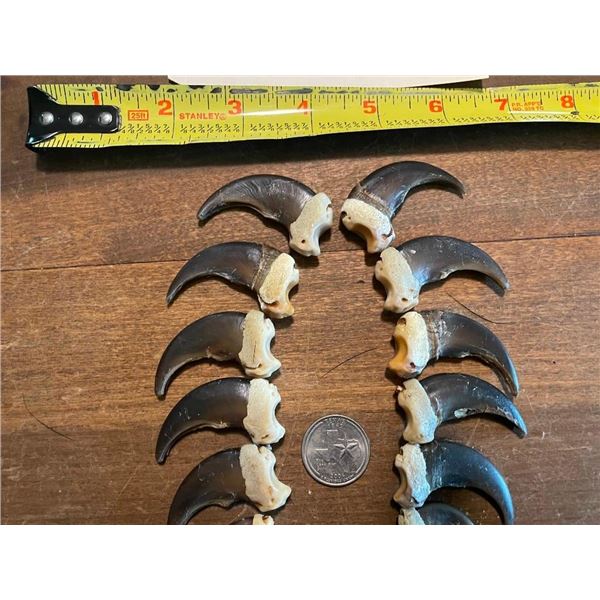20 Matching BLACK BEAR Front Claws. They are All from the same BEAR! There are 10 Front Claws and 10 Back Claws that measure 1"-2" Long Each. Great for display or Native American Crafts and Jewelry making. (ONE$) TAXIDERMY