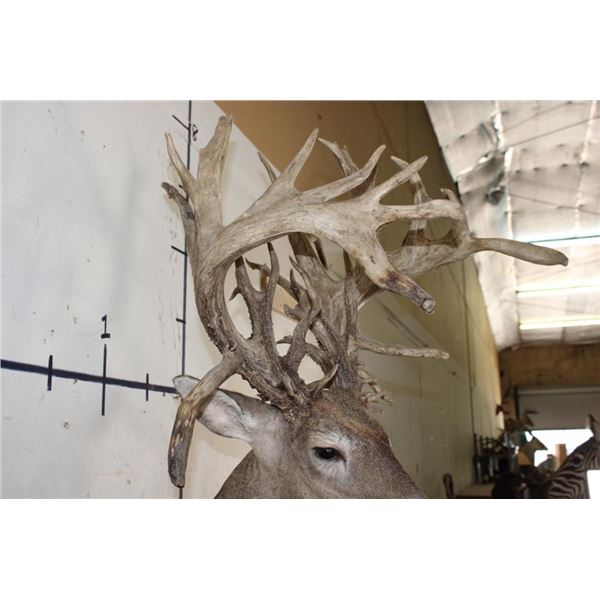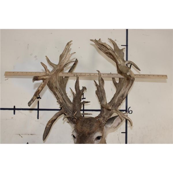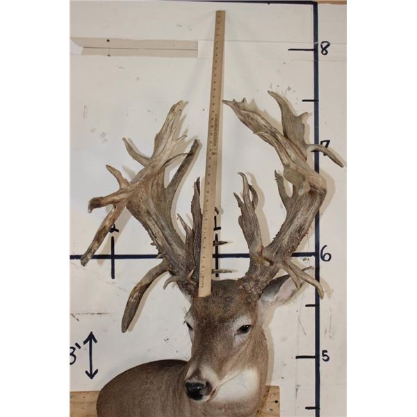 Nice, Newer XXL Non-Typical 44-Point WHITETAIL DEER Wall Pedestal in Good Condition. It has a Tall Basket and a 22" Spread. ODDITIES AND CURIOSITIES TAXIDERMY