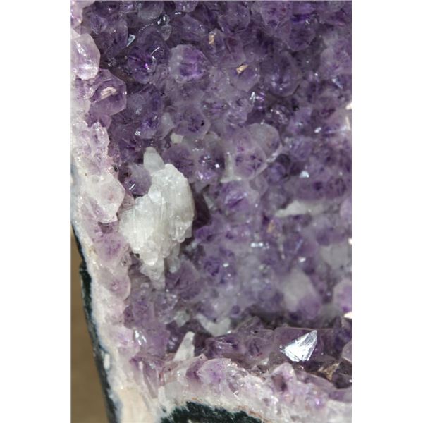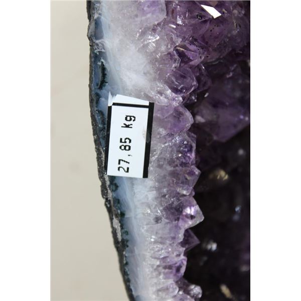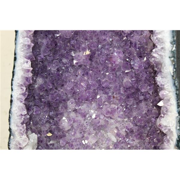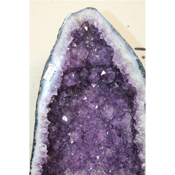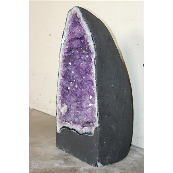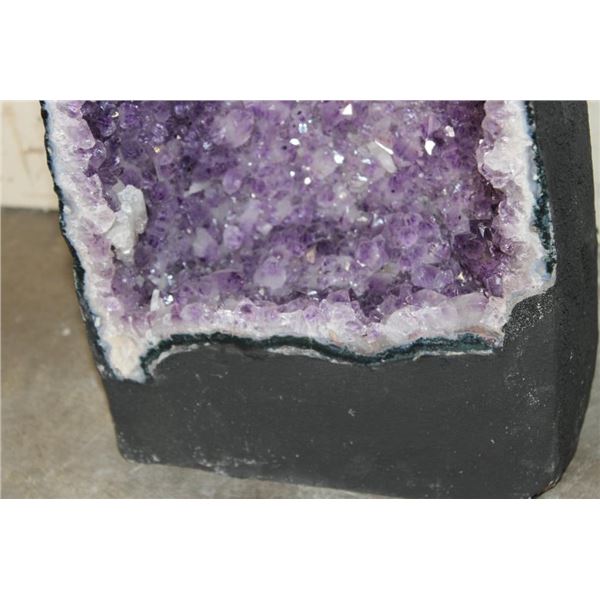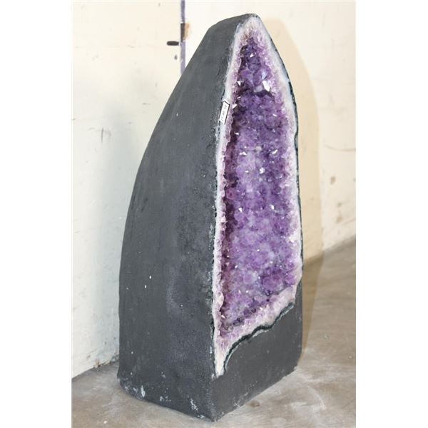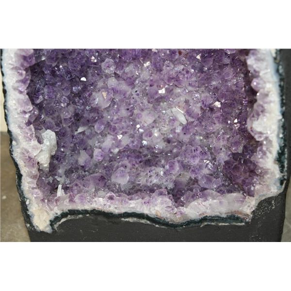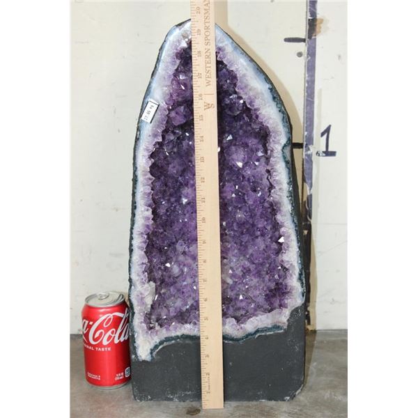 Big Deep Purple AMETHYST Crystal Geode Cathedral. It measures 19.75" Tall x 9.5" Wide x 8.5" Depth and the Total Weight is 61.27 lbs or 27.85 kg. This is a stunning decorative piece. ROCKS FOSSILS MINERALS CRYSTALS