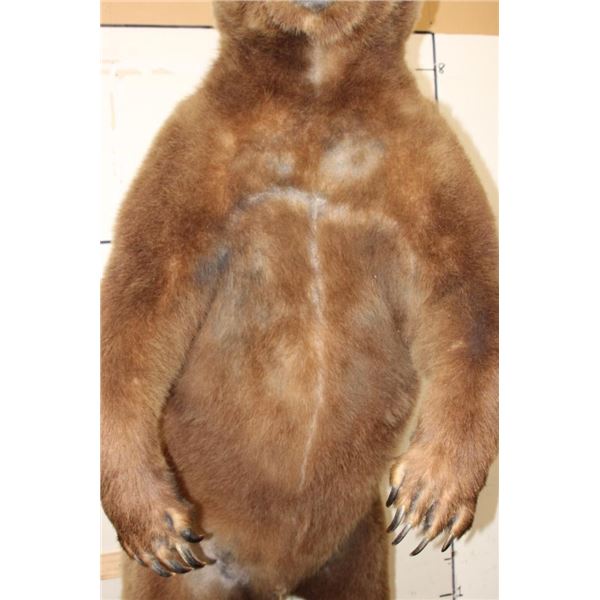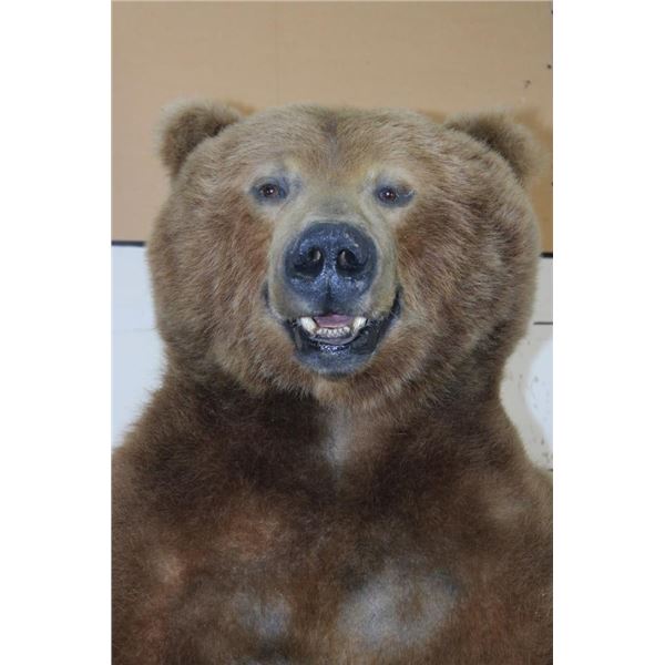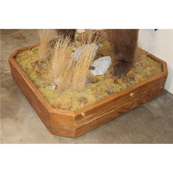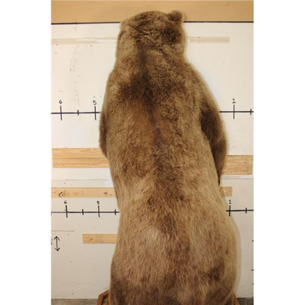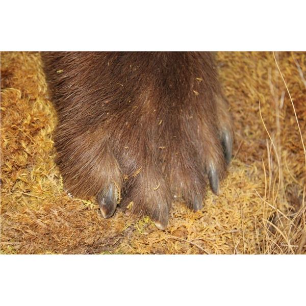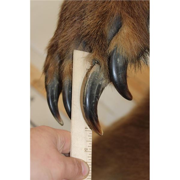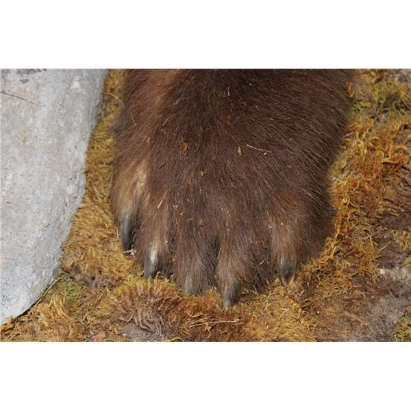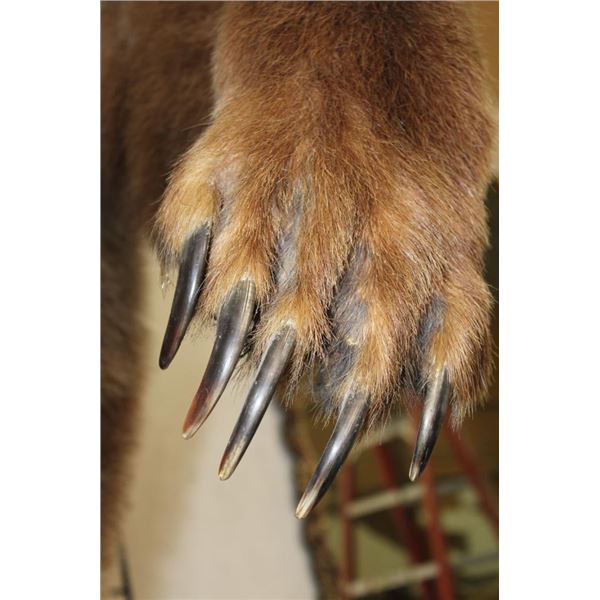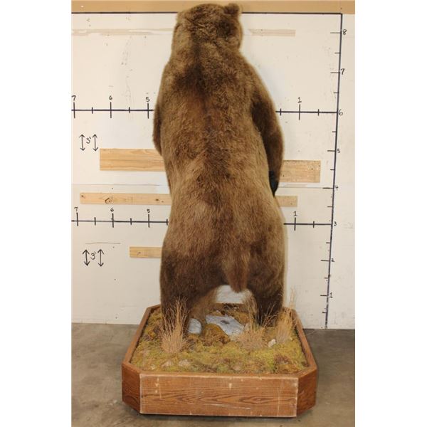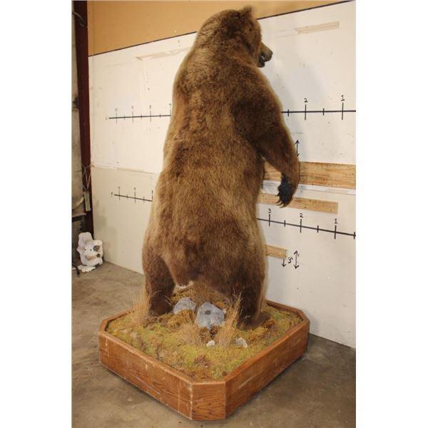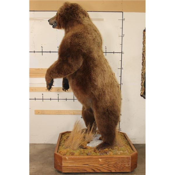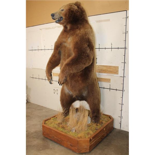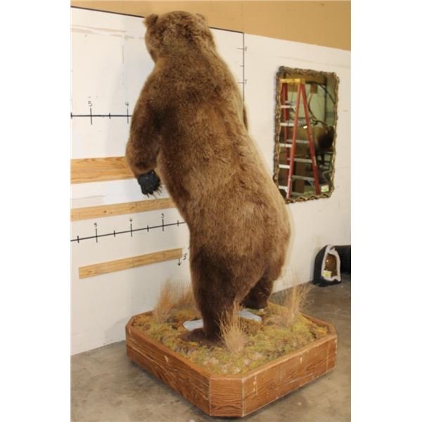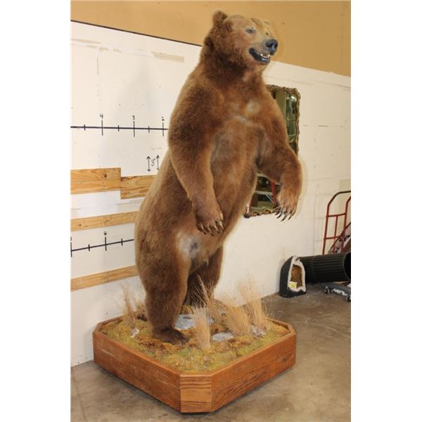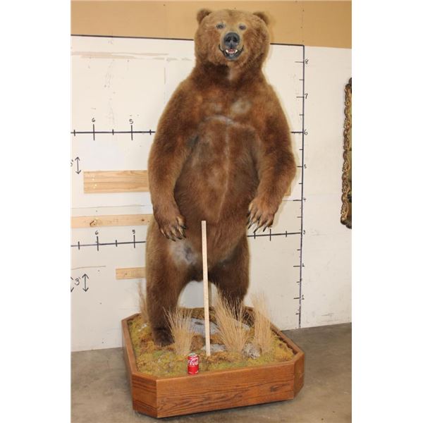 Massive Standing BROWN BEAR/GRIZZLY BEAR. He stand at 7' 4" Tall and each Claw measures over 4" Long. He is mounted on a 50" x 47" Wood Base with Wheels. The Total Mount Height is 8' 5" Tall. This is a High Quality Mount in Good Condition. He has a great face! TAXIDERMY