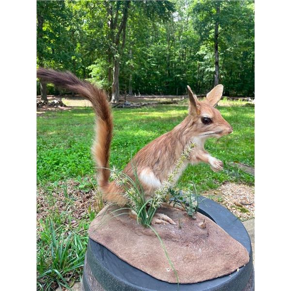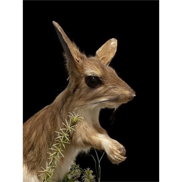 *Rarely Seen* Life-sized South AFRICAN SPRINGHARE. He is mounted on a natural grass and dirt base and measures 19" Tall x 18" Long x 14" Wide. This is an adorable and very unusual looking creature! ODDITIES AND CURIOSITIES TAXIDERMY