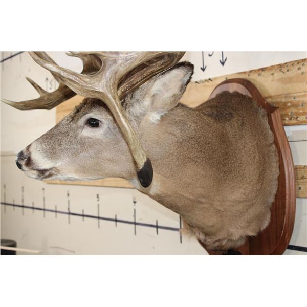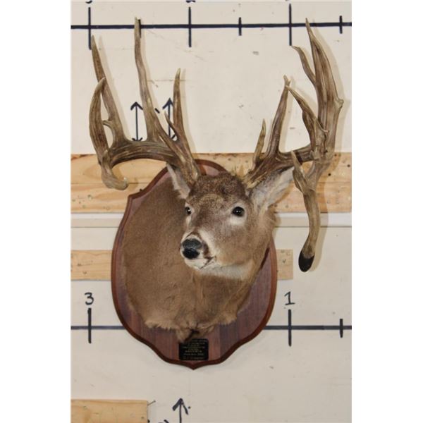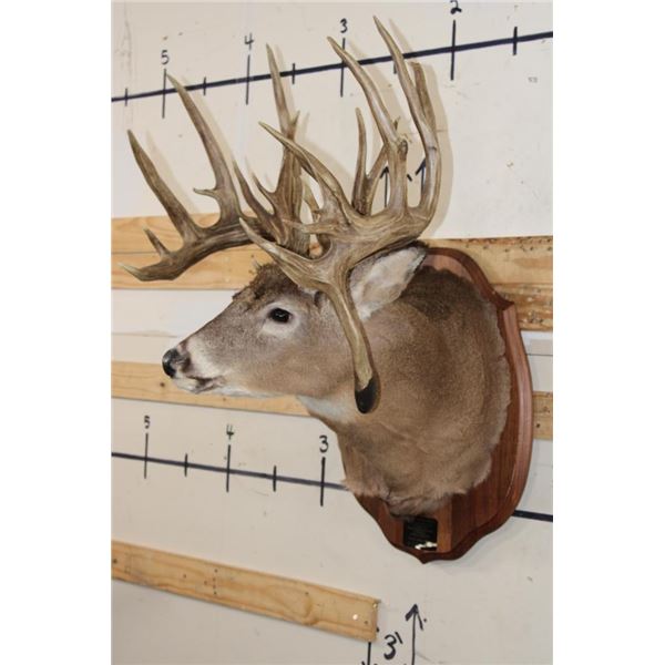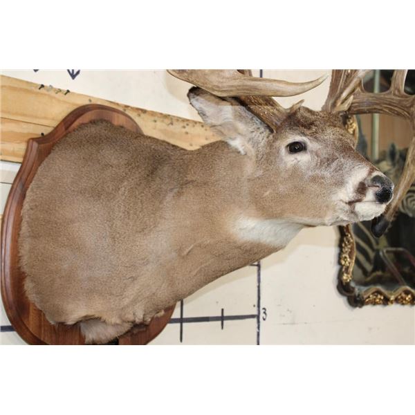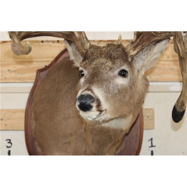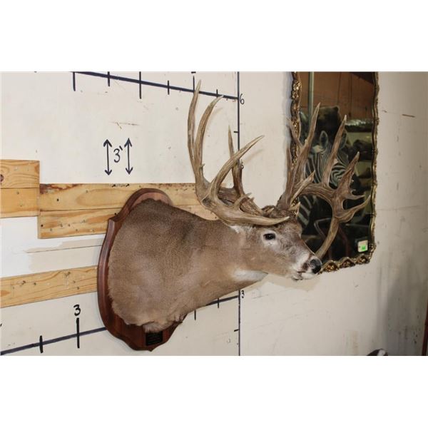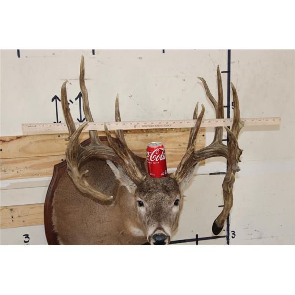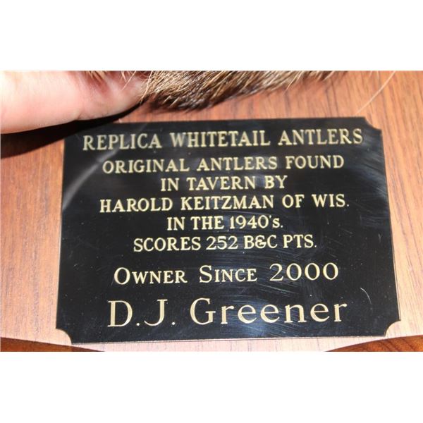 22-Point WHITETAIL DEER Shoulder Mount with Reproduction Antlers. This mount is after original antlers found in Tavern by Harold Keitzman of Wisconsin in the 1940's with a 252 Boone and Crockett Scale Score. It has a 23.75" Spread and a Big Drop Tine. TAXIDERMY