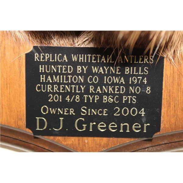 14-Point WHITETAIL DEER with Reproduction Antlers after the ranked Number 8 Hamilton County Iowa 1974 Whitetail with 201 4/8 Typical Boone and Crockett Points. It has a 25.25" Spread. COLLECTIBLE TAXIDERMY