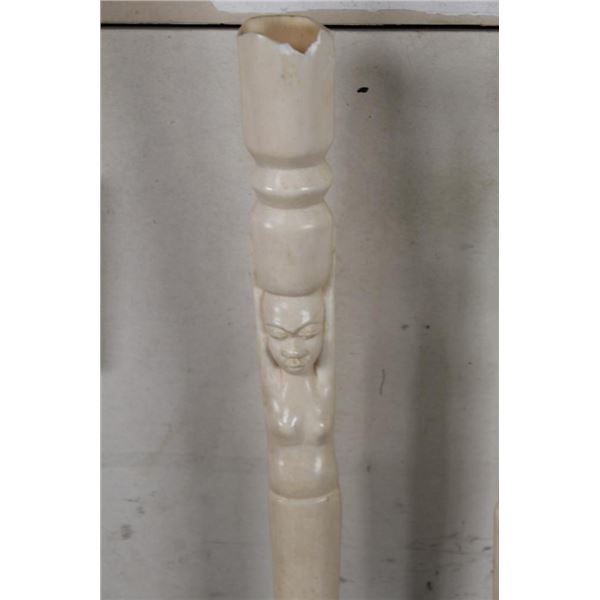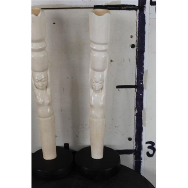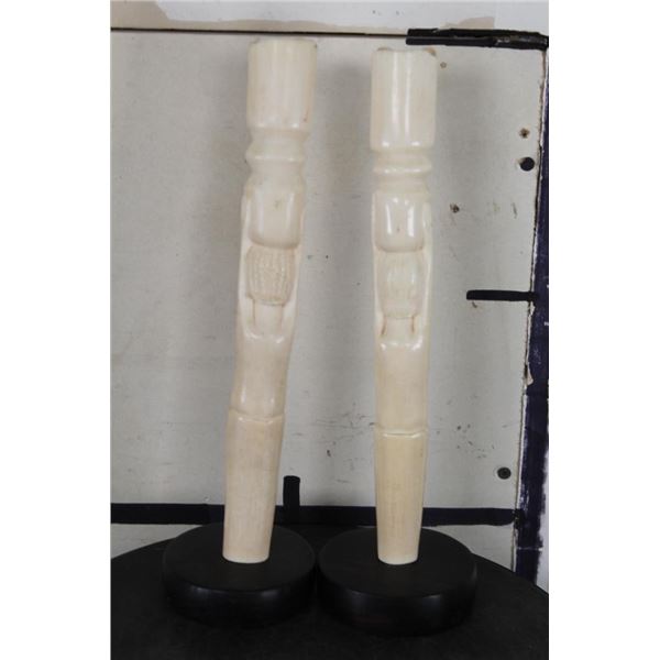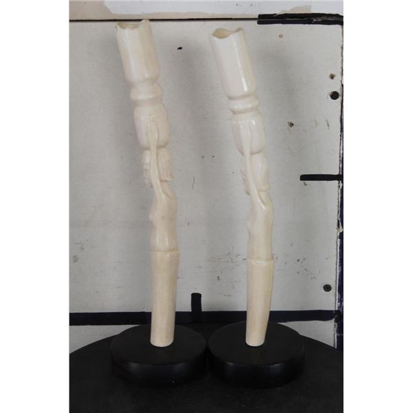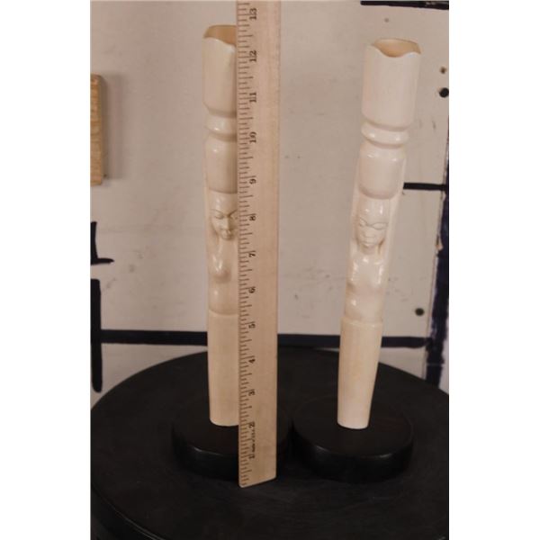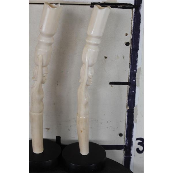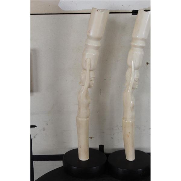 **TEXAS RESIDENTS ONLY**! 2 Hand-carved AFRICAN ELEPHANT IVORY Figurines or Statues on Wooden Bases from Nigeria. They measure 12.5" Tall x 12.25" Tall. The Bases are 3.5" Wide (ONE$). COLLECTIBLE AFRICAN IVORY SCULPTURES