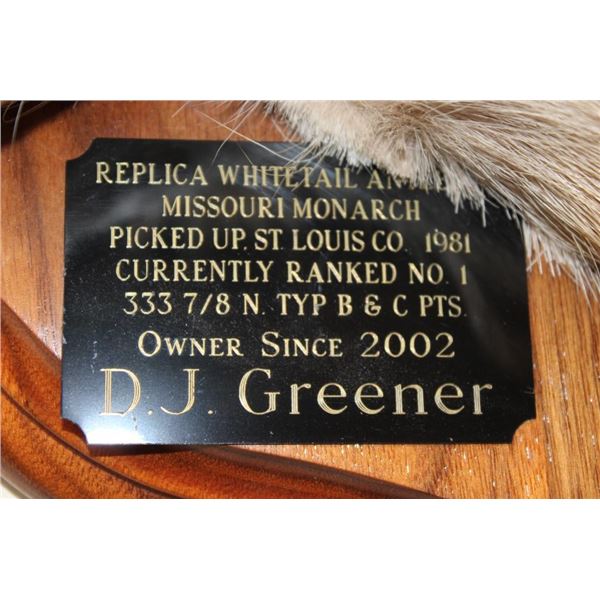World Record "Missouri Monarch" Reproduction Antlers that scored an astounding 333 7/8 Points on the Boone and Crockett scale. The original was picked up in St. Louis County Missouri in 1981. The world record remains unbroken to this day. COLLECTIBLE TAXIDERMY