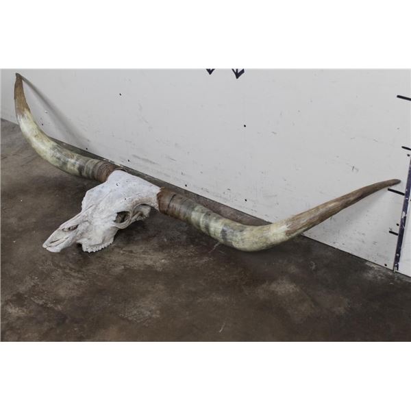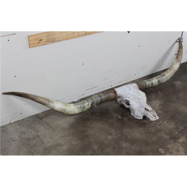 Nice XL Texas LONGHORN Skull with Removable Horns and a complete set of Teeth. It measures 77.75" from Horn Tip to Tip. TAXIDERMY