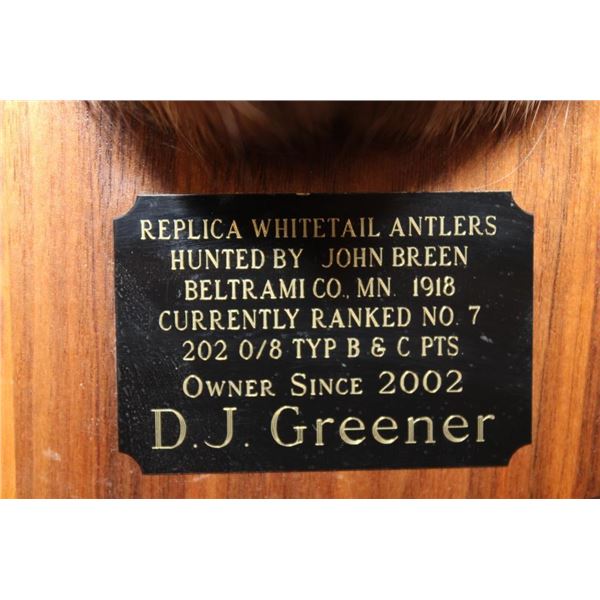 17-Point Reproduction WHITETAIL ANTLERS after John Breen's Beltrami County Minnesota 1918 NO. 7 202 0/8 Typical Boone and Crockett scale kill. It has a 27" Spread. COLLECTIBLE TAXIDERMY