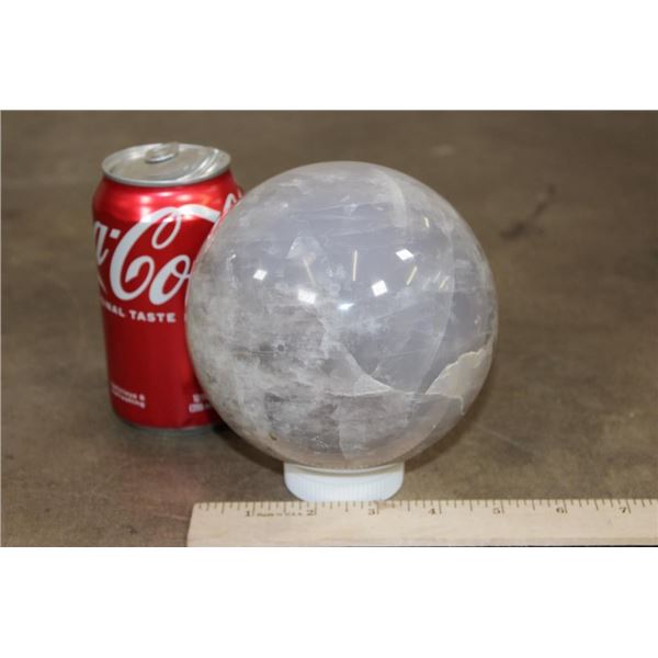 Big SMOKEY QUARTZ Crystal Semi-precious Mineral Sphere. It measures 5" in Diameter and the Total Weight is 6 lbs 7 oz. Smokey Quartz is revered for its grounding, protective, and stress-relieving properties. ROCKS MINERALS CRYSTALS
