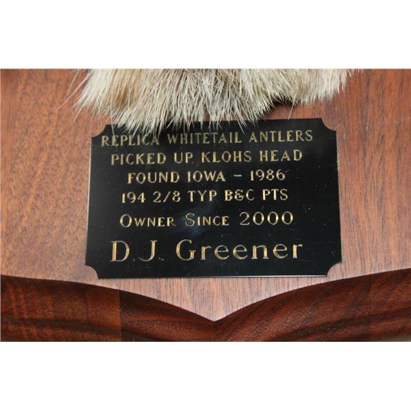 XL Reproduction WHITETAIL Deer Antlers "Picked Up Klohs Head, found in Iowa 1986. It has a 194 2/8 TYP Boone and Crockett Points". COLLECTIBLE TAXIDERMY
