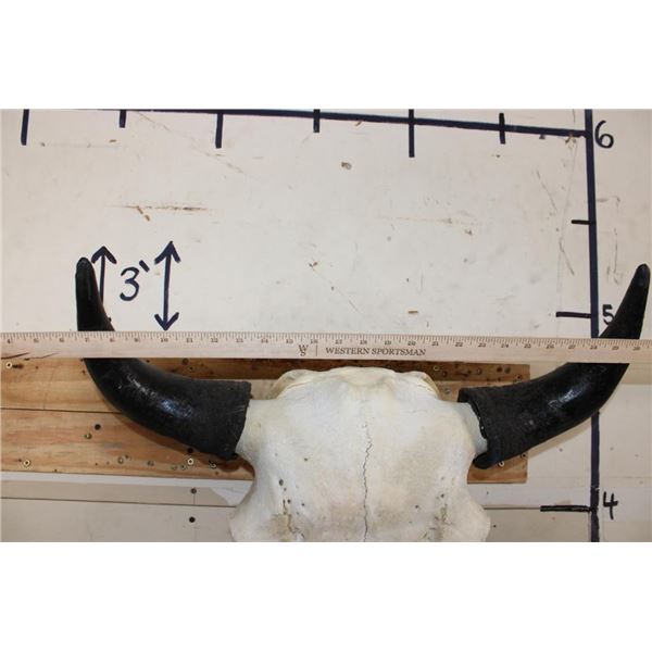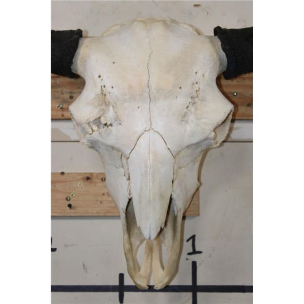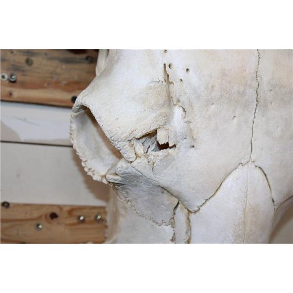 Very Nice BISON or BUFFALO Skull. The Left Horn measures 14.5" Long and 13.25" around the Horn Base. The Right Horn measures 14" long and 12.75" around the Horn Base. It has All its Teeth and a 24.25" Spread. TAXIDERMY