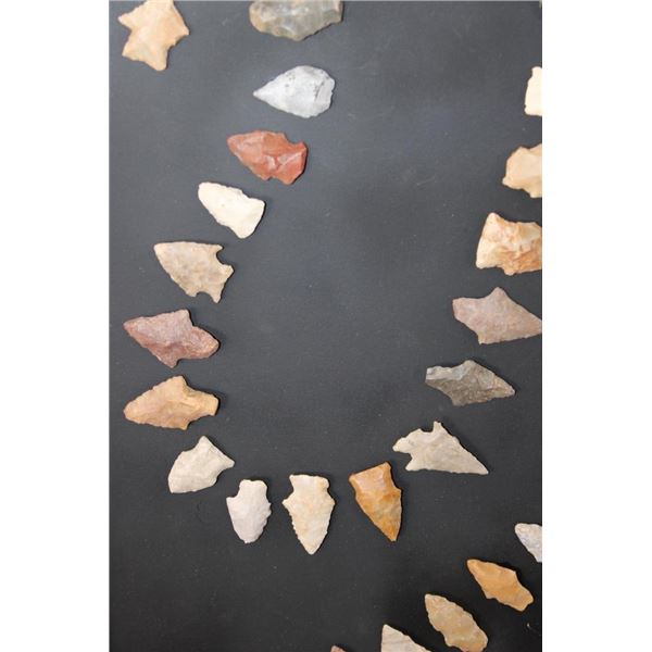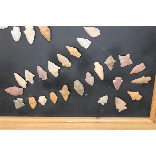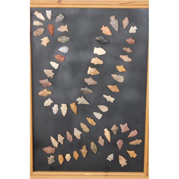 62 Authentic Ancient Prehistoric Flint Arrow Points. These were found in Northeast Texas and Southwest Arkansas. They date from the Archaic Period (8000-1000 BC) to the Woodland Period (1000 BC-1000 AD). They are displayed in a Wood Frame with No Glass that measures 26.25" Tall x 20.25" Wide. In Northeast Texas arrowheads were primarily used by prehistoric Native Americans for hunting, fishing, and warfare. These stone tools were essential for survival and daily life. ARROWHEADS *While these arrowheads came from an estate of a long-time collector; we as the auction company are not going to get into a protracted discussion about age and authenticity. This collector has no paperwork or COA as to age or authenticity. While we believe the vast majority; if not all to be old; we are wholly uncomfortable with an argument with qualified and unqualified, alleged authorities. All of that to say; we are not guaranteeing age or authenticity*