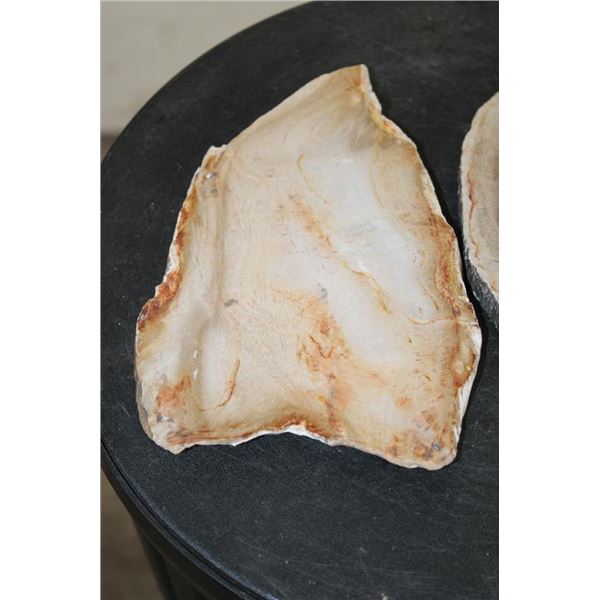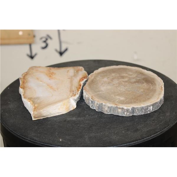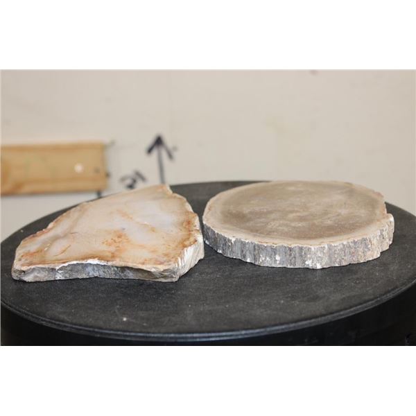 2 Polished PETRIFIED FOSSILIZED WOOD Slab Slices from Indonesia. They measure 7" Long x 5" Wide x 1/2" Thick and 6.5" Long x 5.5" Wide x 1/2" Thick. Total Weight 2 lbs 13 oz. These petrified and fossilized wood slices are a 3 dimensional representation of organic material from the Triassic Forest. (ONE$) ROCKS FOSSILS MINERALS