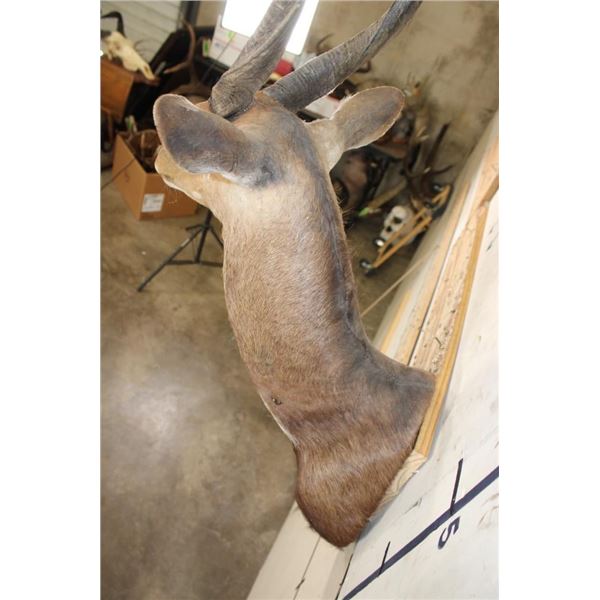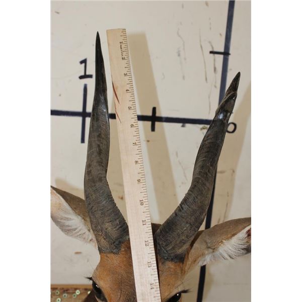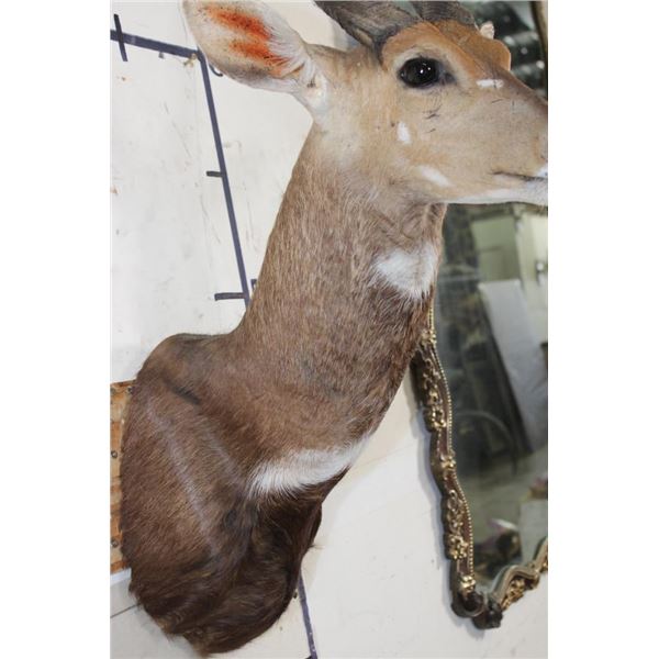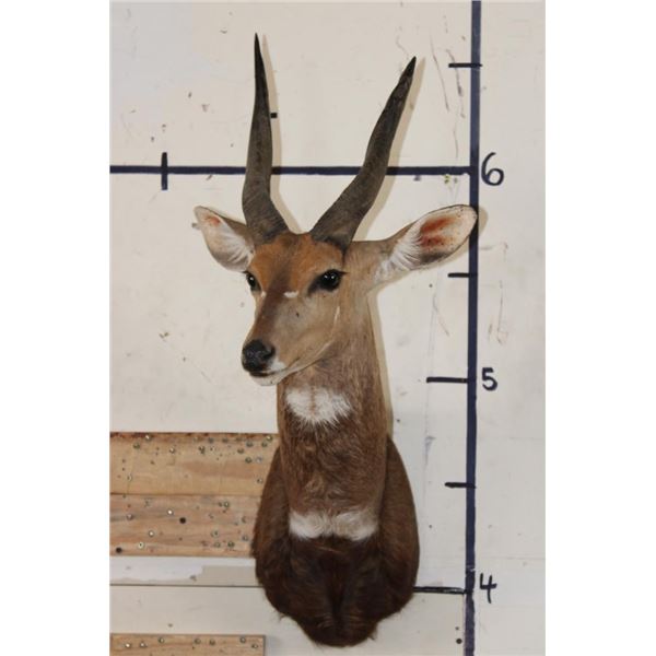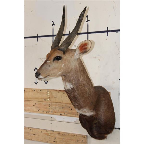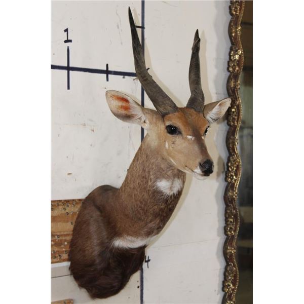 BUSHBUCK Shoulder Mount. The Left Horn measures 14" Long and the Right Horn measures 12 1/8" Long. It is in Good Condition. TAXIDERMY