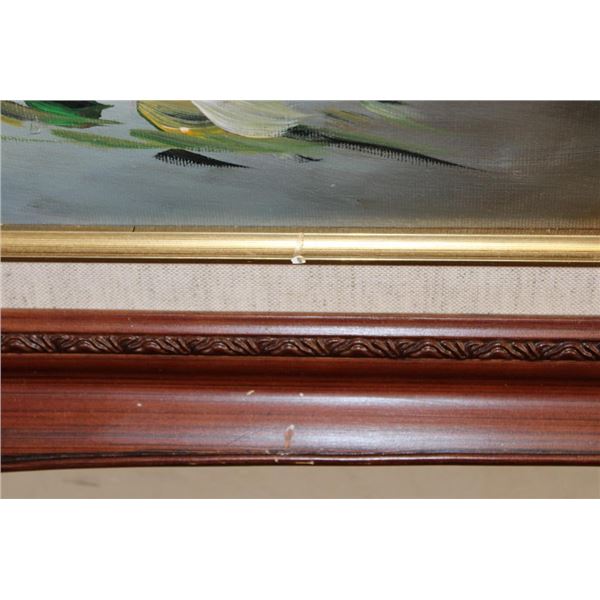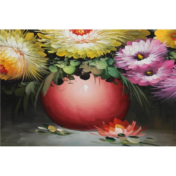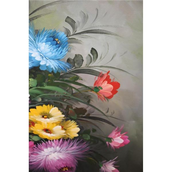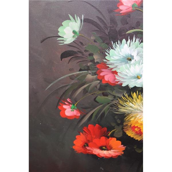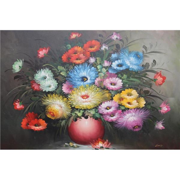 Original Floral Still Life Oil Painting by artist "Louis" in a Wooden Frame. It measures 41.5" Long x 29.5" Wide. COLLECTIBLE ART PAINTINGS