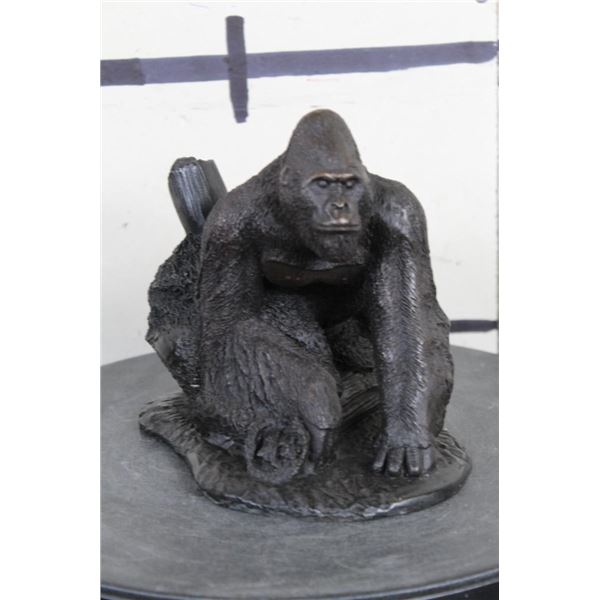 BRONZE GORILLA Sculpture. Realistic and detailed. Measures 6.5" Tall x 6.5" Wide x 7.5" Long. COLLECTIBLE ART BRONZE SCULPTURES