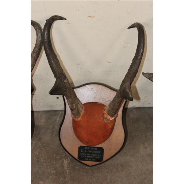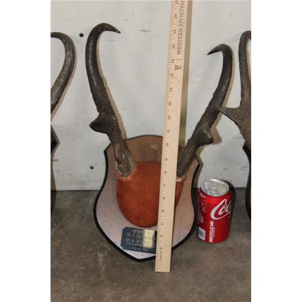 3 Respectable sets of Mounted PRONGHORNS on Wooden Plaques. They were Taken in Malta, MI 2010, Encampment, WY 2011, and Tatum, NM 2005. (ONE$) TAXIDERMY