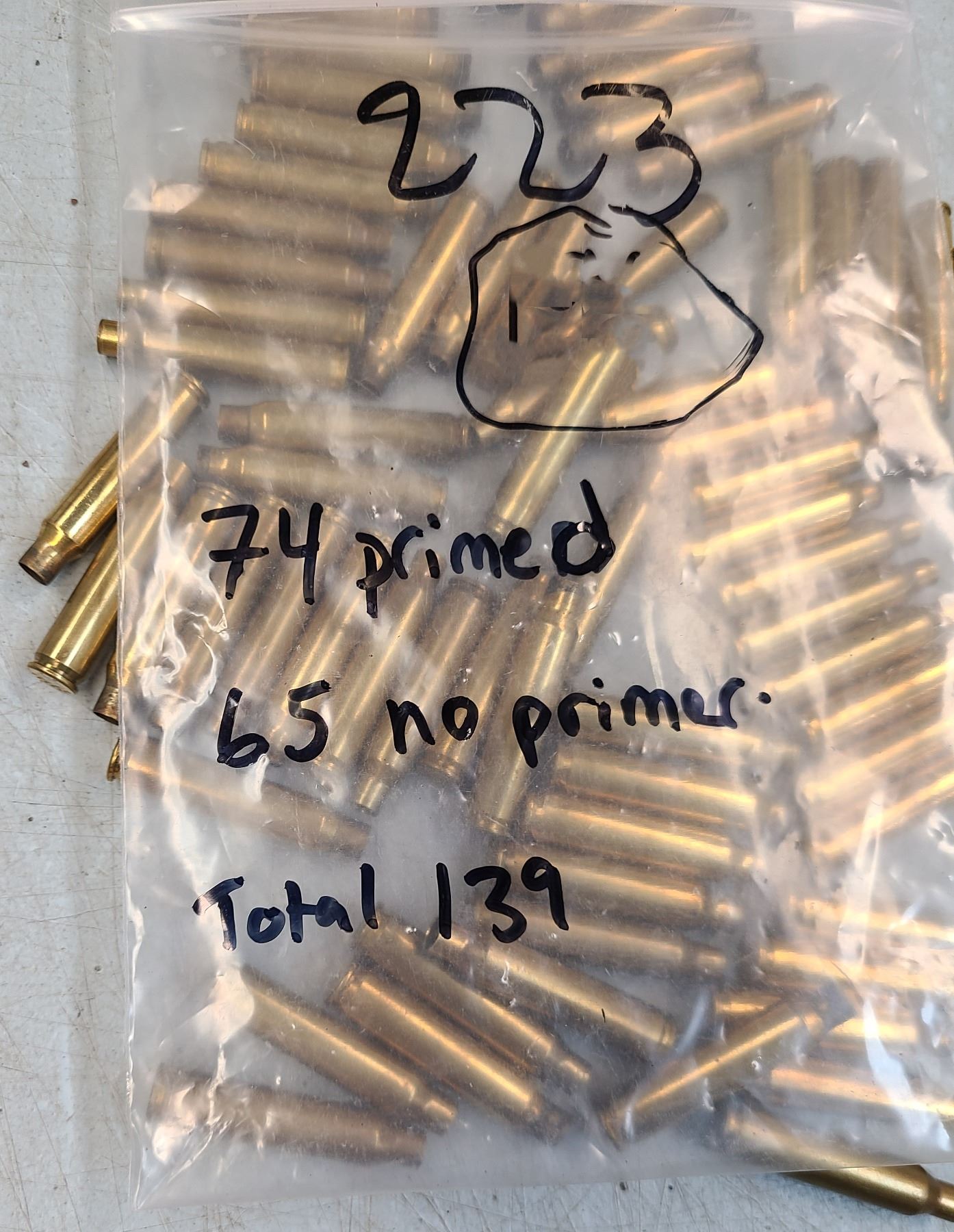 Lot 1445 223 Rem BRASS 74 Primed - 65 Not Primed - 139 rds