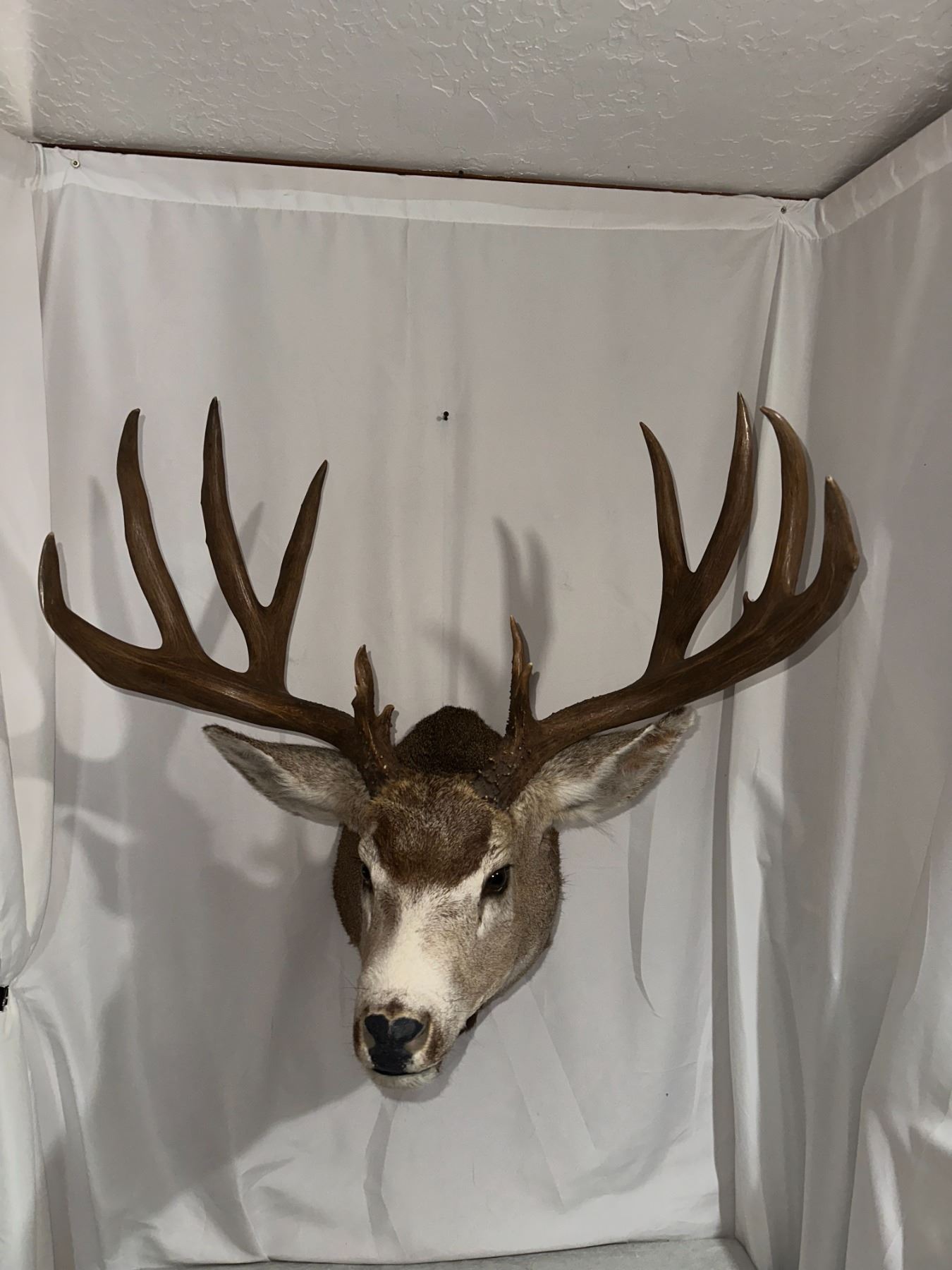 An absolutely amazing Mule Deer Buck with mass for days, You will be hard pressed to find another Mule Deer with the mass that this buck has and add in the double eye guards.