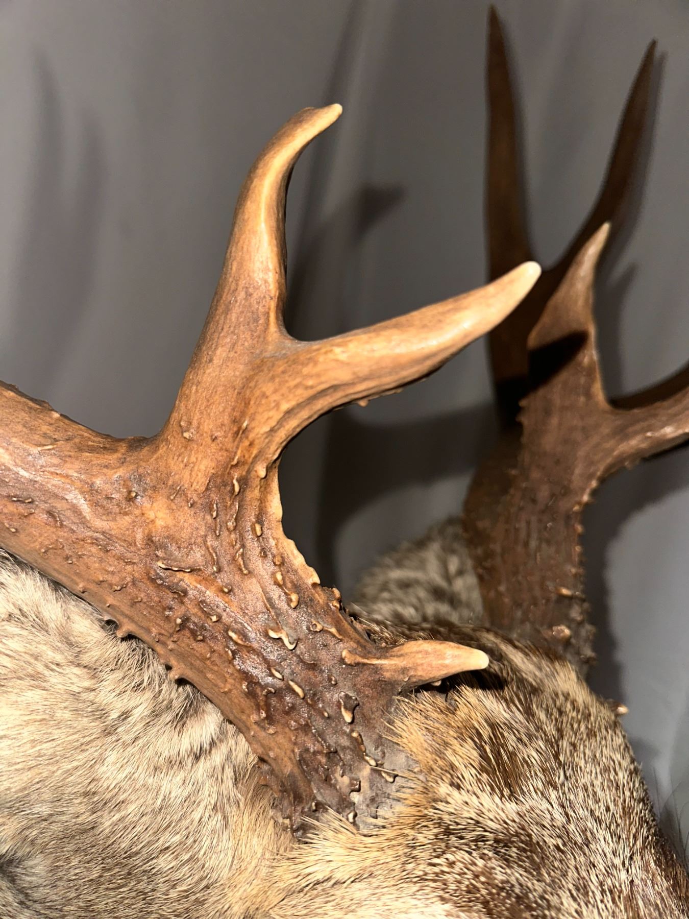The buck was obtained from an estate, and the details are sketchy. It was allegedly harvested in Wyoming in the 1930’s or 1940’s.