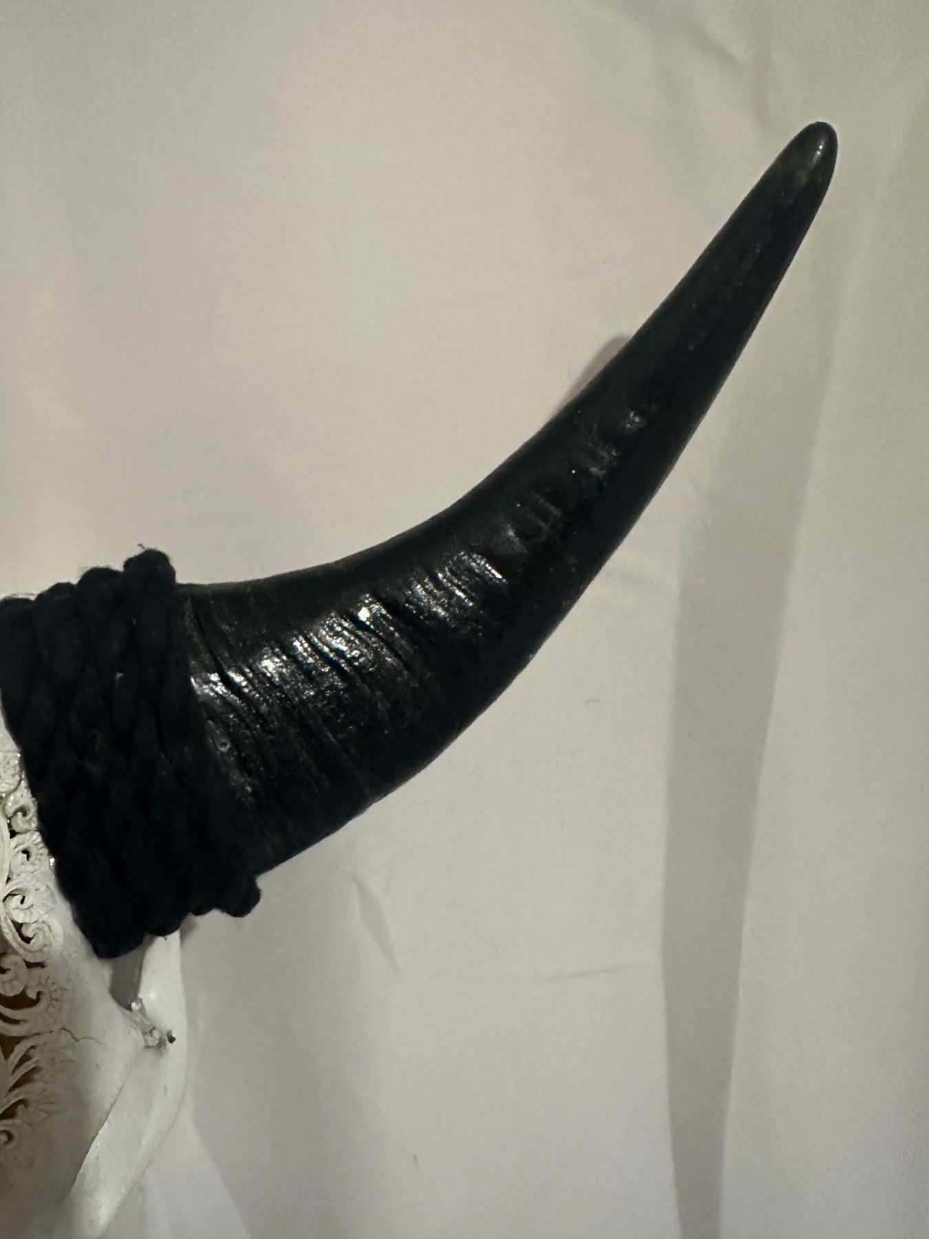 Lot 15a Hand Carved buffalo skull with long carved horn