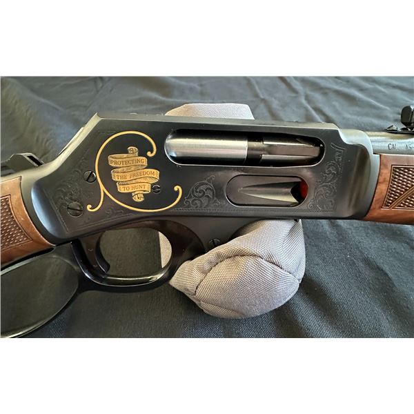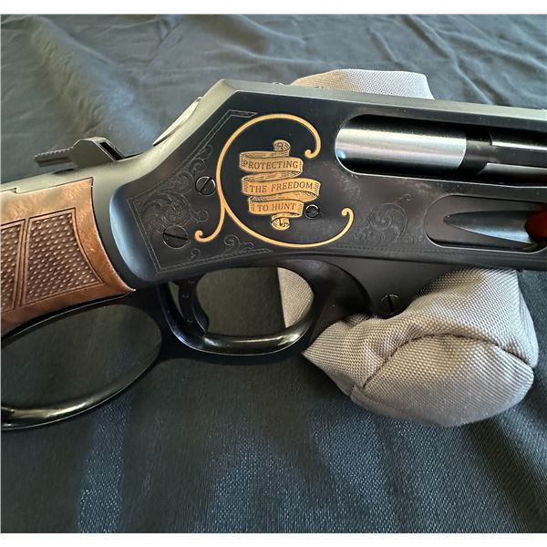 Safari Club International's Limited Edition (1 of only 50 of these made) Custom Henry Freedom .45-70 classic steel lever action rifle. The perfect blend of classic craftsmanship and modern performance with SCI's Freedom Rifle, designed for accuracy and style in every shot.