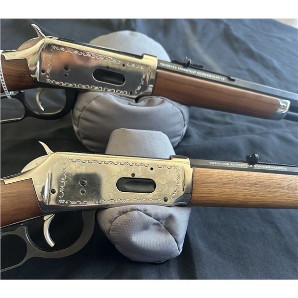 This year we choose two Winchester Model 94 Teddy Roosevelt Commemorative 30-30 Rifles in consecutive Sereal Number order to make it more special. One being a Carbine and the other a rifle. They honor Teddy Roosevelt with being the 26th President and served from 1901-1909. Also have his signature on the bottom by the trigger guard. Octagon barrels and saddle rings as where the original Winchester rifles back then.