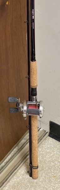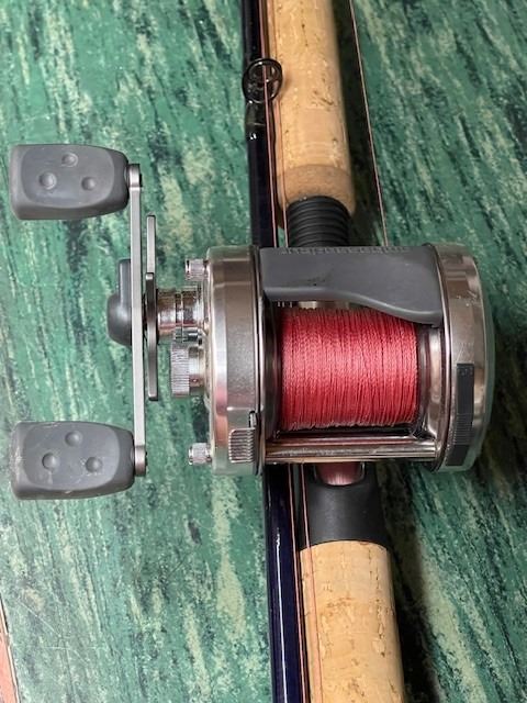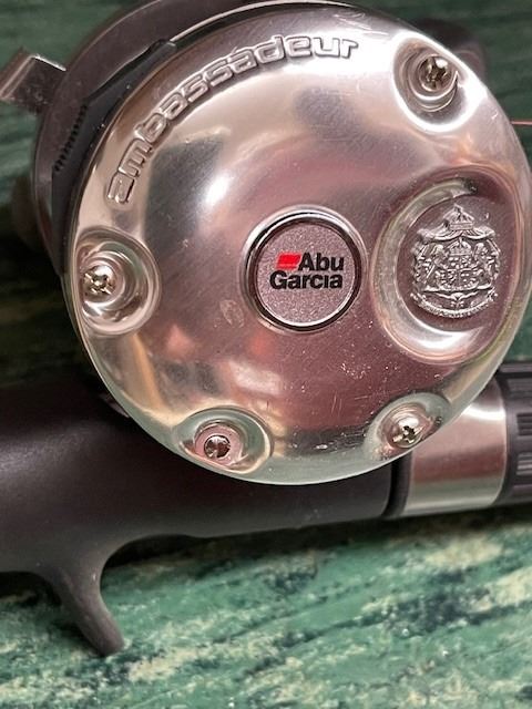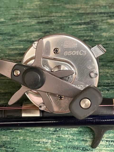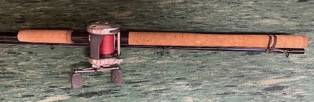 Lot 388 AMBASSADEUR 6501C3 Left hand bait cast reel with ANGLER SS 11ft Salmon/Steelhead Rod