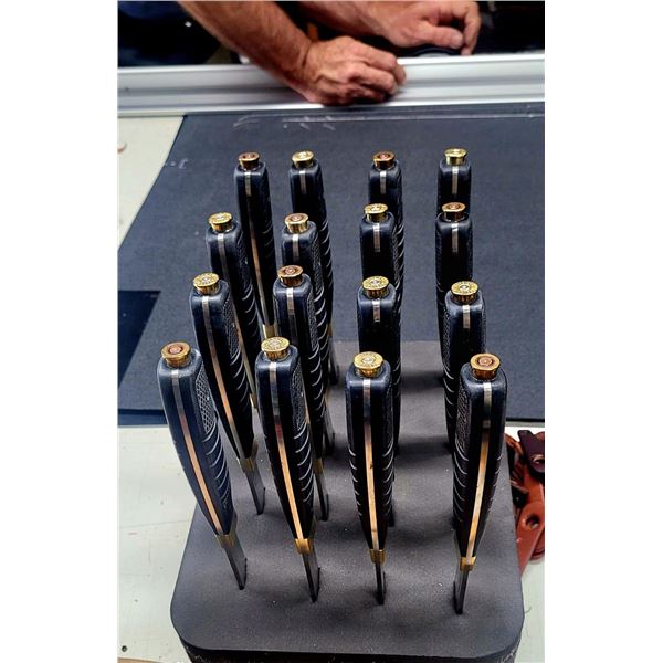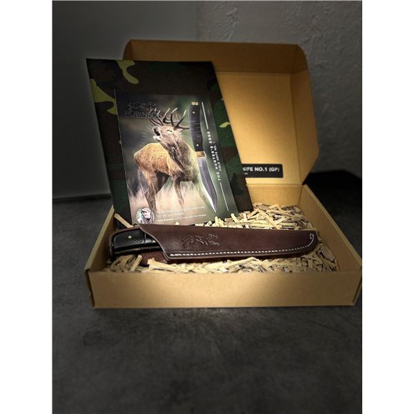 The Field Knife No.1 (GP) is one of the first hunting knives designed for function and form by world renowned hunter, star of Outdoor Channel hit show Farming the Wild Mike Robinson. Mike is also an award winning chef & owner of Michelin starred restaurants. Mike’s passion for ethical hunting and the well-being of the animal and species are as important to him as the quality of the food they provide. So, when it comes to the knife he chooses to use for his craft, it not only has to perform all the tasks asked of it to the highest of standards, but it must respect and honor the animal it’s being used on. After much deliberation, Sandvik 12 C 27 steel was settled on for the blade because of its perfect balance of properties. The Swedish steel is hard enough to take and hold a good edge, but has sufficient carbon to resharpen easily. 3mm thick, the blade is rigid and extremely strong. It is stainless enough to resist the corrosive elements of blood, and puts up with going through the dishwasher repeatedly. The handle is made from G10, a woven fibreglass style compound that is resistant to almost everything you can throw at it. The shotgun style checkering and vertical grooves give amazing grip, even when skinning a fatty Wild Boar. The slim Brass bolster is aesthetically pleasing and helps you find the knife if you put it down in the grass or on the ground. The signature cartridge in the butt of the knife is a British .303. This great caliber is an important part of Mike’s heritage and of course is a rimmed round, so it grips the tab of the sheath to secure the knife. Field Knife No.1 (GP) by Mike Robinson was designed without compromise and brought to life by Flint & Flame using our knife expertise. The result is the ultimate knife that Mike believes firmly, is the best hunting knife available.