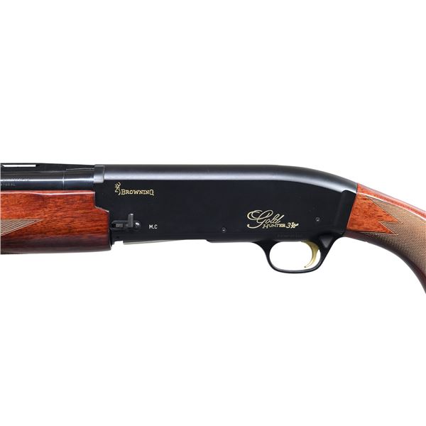 Cal. 12 GA, 2 3/4", 3", & 3 1/2". S# F01NP05245. Bbl. 28" V/R with Invector chokes. Full choke tube installed. Gloss blued bbl. with matte black finished gas operated alloy action and gold finished trigger. Gloss finished forearm and pistol grip stock with original Browning recoil pad. Mfg. 1998-2005. UNATTACHED ACCESSORIES: Full Mod. and IC tubes along with choke wrench. CONDITION: over 98% metal finish. Stocks have very good finish showing small marks. Very good bright bore. (25-3707/DS). MODERN. $500-700.