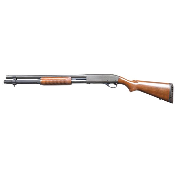 Cal. 12 Ga., 2 3/4". S# T080314V. Bbl. 20" w/ steel bead & cyl. choke; code "AZ" indicates appears to indicate March 1975. Appears to be ex-police w/ parkerized finish & "06179-39" stamp on receiver. Full length mag. tube. Walnut stock set w/ Rem. ventilated pad & sling stud. CONDITION: very good parkerized finish with cycling wear. Good wood finish with epoxy repaired grain check on buttstock & scattered handling marks. Shiny bore shows light fouling. (25-2959/MD). MODERN. $500-800.