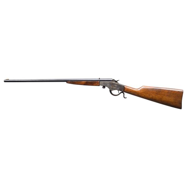 Cal. 22 LR. NSN. Bbl. 22" rnd. Brass blade front sight. V-notch rear sight. Blued bbl. Case colored action. Hardwood stock set. CONDITION: stock set has added varnish with scattered flaking, dings & handling marks. Action retains most of its case colors with scattered fading to gray mostly on lever & oxidation. Bbl. retains most of its original blue with some edge wear, handling marks & overall light oxidation. Hammer not engaging when hand cycled & lever is loose. Near excellent bright bore. (25-2052/MJC). CURIO. $300-400.