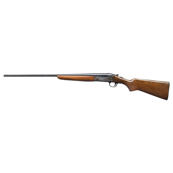 Cal. 410, 3". NSN. This shotgun has Westfield, Mass address on left side of receiver; "3R" & "1R" barrel proofs; appears to indicate 1964 mfg. Plain 26" barrel with bright bead & full choke. Case colored receiver with single trigger, ejector & top tang safety. Walnut stock set with black plastic buttplate. CONDITION: very good blue with light marks, spots of oxidation & pinprick patina. Good case colors with some light patina. Plastic triggerguard has broken tang with 1 piece missing. Very good wood finish with light handling marks. Shiny bore with light fouling. (25-1458/MD). CURIO. $400-600.