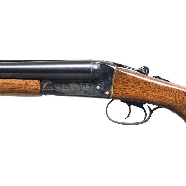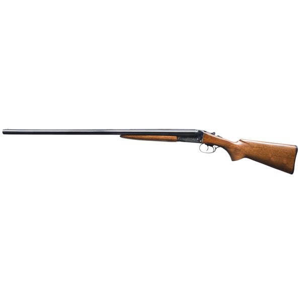 Cal. 12 ga. 2 3/4". NSN. Bbls. 30" w/ fixed Mid & Full chokes. Aluminum front bead. Case colored boxlock action w/ double triggers & extractors. Splinter forearm & pistol grip walnut stock. LOP: 14 1/8" over original buttplate. CONDITION: outstanding all-original shotgun retaining over 98% wood & metal finish. Bright near excellent bores. PROVENANCE: paper tag attached to the gun states the following information, "This gun was purchased from a hardware store in the early 1940's for $39.00. The Buyer made weekly payments of from $5.00 to $1.50 until the whole $39.00 was paid". PROVENANCE: from the renowned collection of quality sporting arms from Lewis Drake together with inventory of Lewis Drake Associates. (24-6571/DS). CURIO. $500-800.