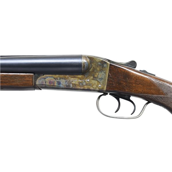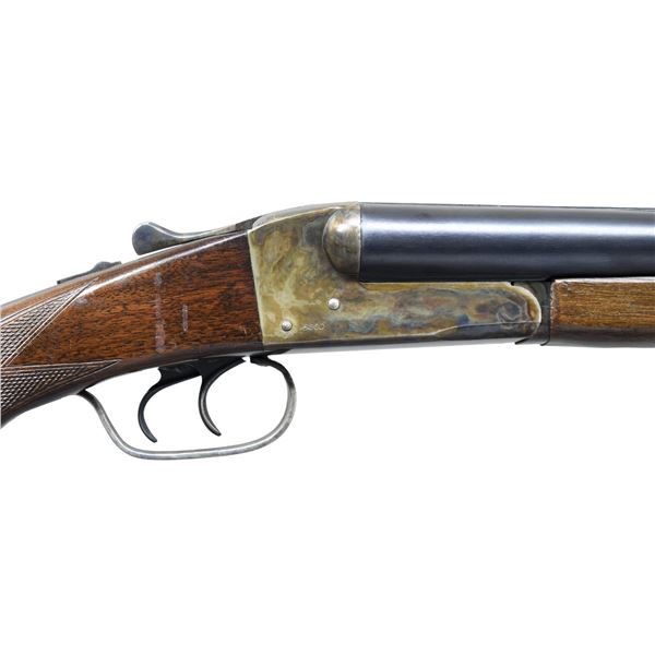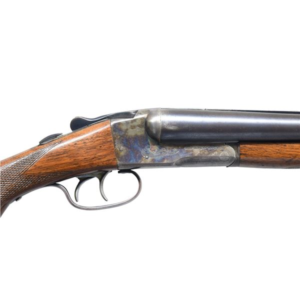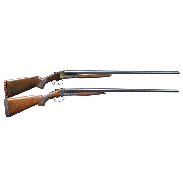 1) CENTRAL ARMS CO RANGER 101.6 5000. Cal. 12 Ga. S# C23357. Mfg. for Sears & Roebuck as Savage / Stevens Model 5000. The 30" barrels have white beads. Bore chokes measure Full & IM. Boxlock action with double triggers, extractors & auto-safety. Checkered walnut stock set. LOP: stock cut to 13.25" over Red Head pad. CONDITION: Good barrel blue. Good case colors. Good wood finish. Shiny bores with light fouling. (25-1442/MD). 2) WESTERN FIELD NEW MODEL SHOTGUN. Cal. 12 GA. S# H65504W. Mfg. for Montgomery Ward. The 30" barrels has white beads. Bore chokes measure Full & IM. Case colored boxlock action with double triggers, extractors & auto safety. Checkered walnut stock set. LOP: stock cut to 13.5" over Hunter black pad. CONDITION: Good blue. Fair faded case colors. Sanded & refinished wood with gouges, cracks & chips. Shiny bores with scratches. (25-1449/MD). ALL MODERN. $400-600.