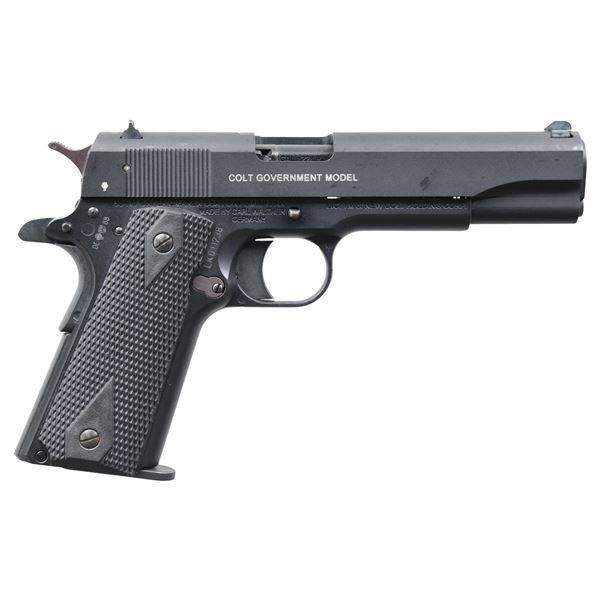 Cal. 22 LR. S# LK011238. Bbl. 5". GI-style sights. German rimfire 1911-style pistol made by Umarex and licensed by Colt. Matte black finish. Checkered rubber grips. MAGS: two 10-rd. UNATTACHED ACCESSORIES: replacement Colt hard case with Series 80 manual, trigger lock, and two spare triggers. CONDITION: metal and grips show scattered scuffs and handling marks. Action functions properly when hand-cycled. Bright, very good+ bore. (25-1068/MJC). MODERN. $300-400.
