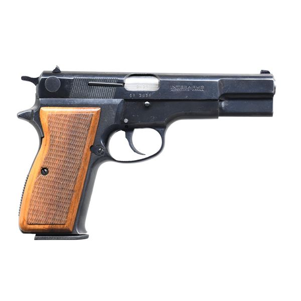 Cal. 9x19 (9mm Para). S# OR3839. This pistol was mfg. 1986-1987 as an export version of the P9 pistol (P9R); approx. 5,500 imported by Interarms of Alexandria, VA. Patterned after the Browning Hi-Powder w/ 4.65" bbl. Slide has safety/decocker along with fixed sights. Blued finish. Two piece checkered wood grips. MAGS: 2 - 10 rd. CONDITION: very good to near excellent blue with spots of finish loss. Very good grips. Near excellent bore. (25-2660/MD). MODERN. $300-500.