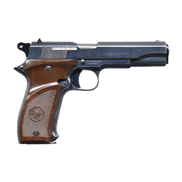 Cal. 9x19 (9mm Para). S# 509877. Imported by Stoeger Arms of S. Hackensack, NJ with Spanish 1970 "O1" proofs. Bbl. 5". Fixed blade front sight (painted yellow) and notch rear sight. Blue finish. Two piece brown plastic grips. MAGS: 1 - 9 rd. CONDITION: very good blue showing light edge wear & storage residue. Very good grips. Very good bore with fouling in the grooves. (25-2662/MD). CURIO. $300-400.