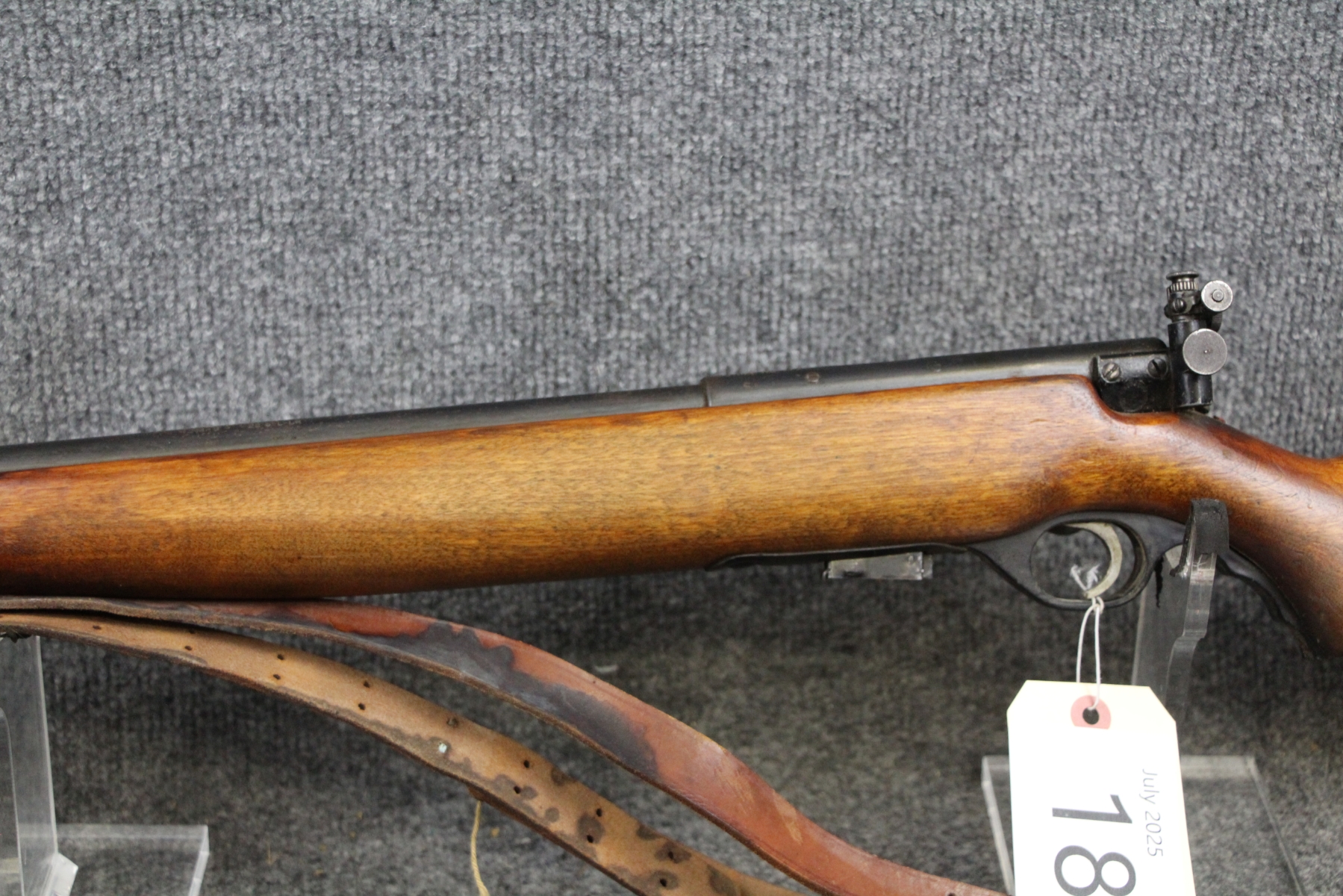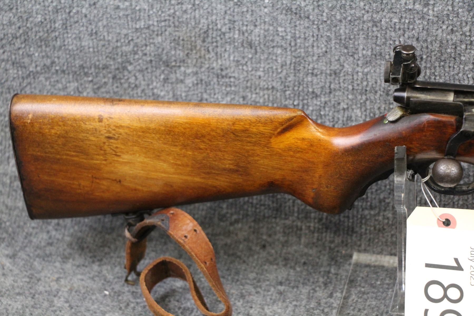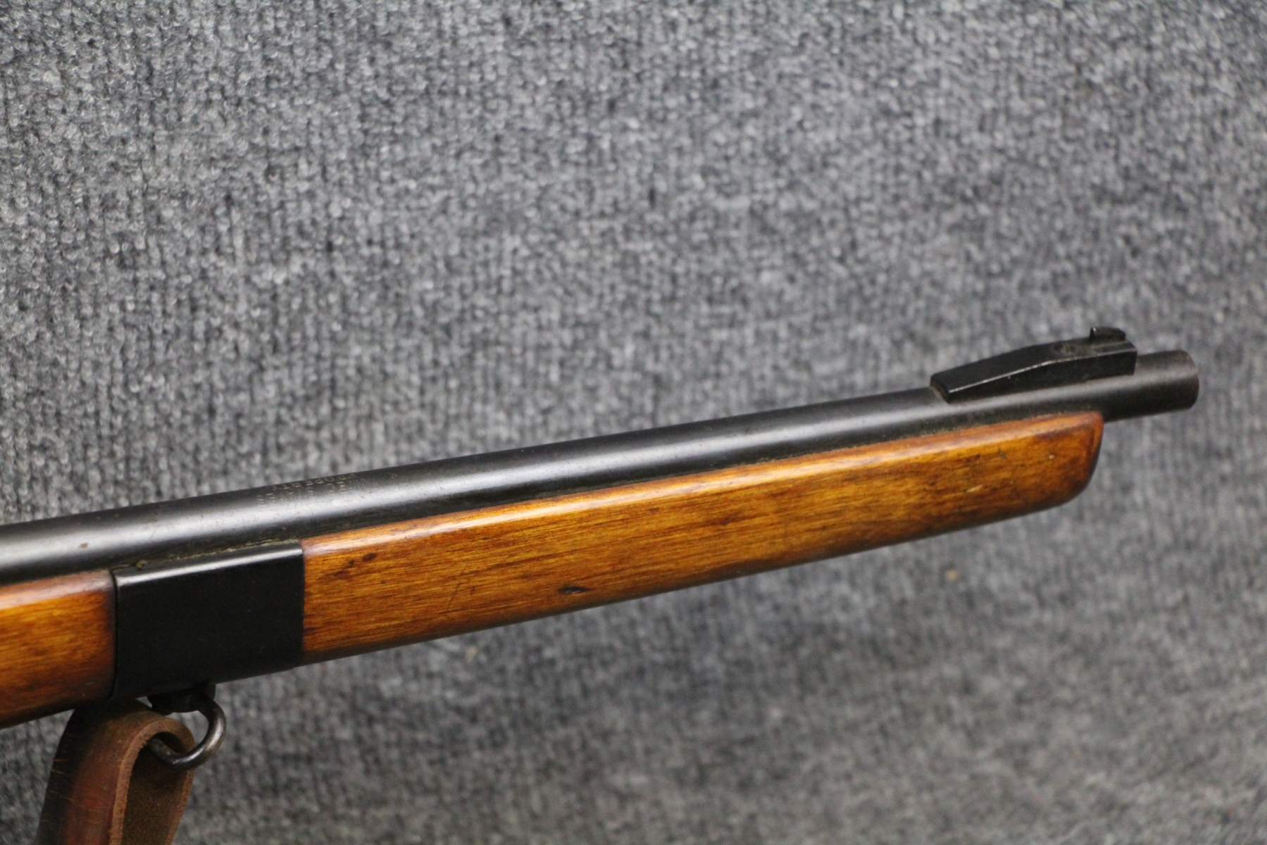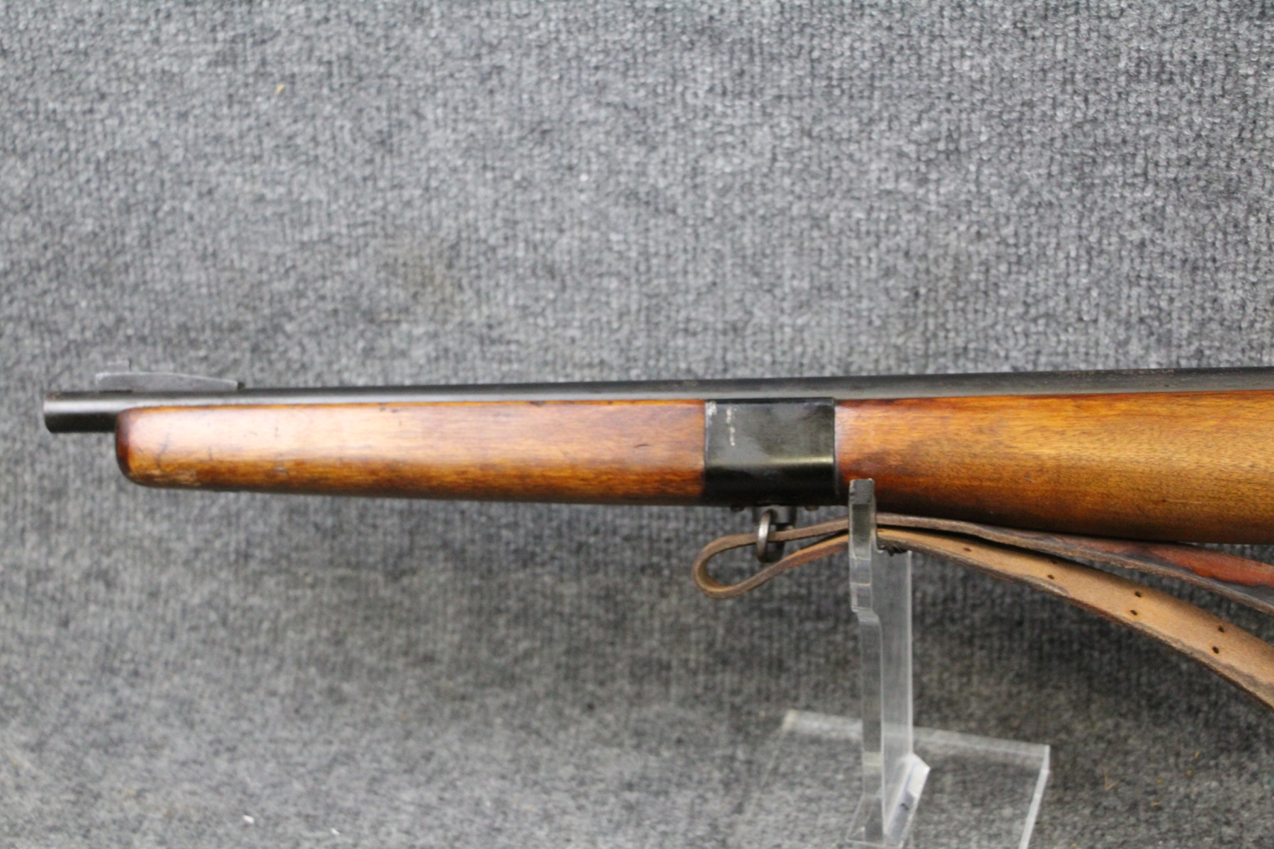 1st one I have ever seen. See link below. Some surface rusting. Some shallow gouges on the stock. Military leather sling. Stamped United States Property. Micrometer rear sight. Steel box mag.