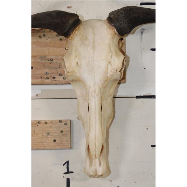 Nice BLUE WILDEBEEST Skull with All its Teeth. It has a 23.5" Horn Spread and a Wire Wall Hanger. TAXIDERMY