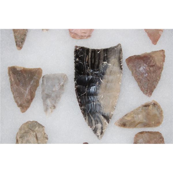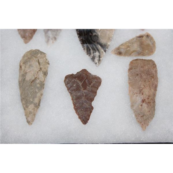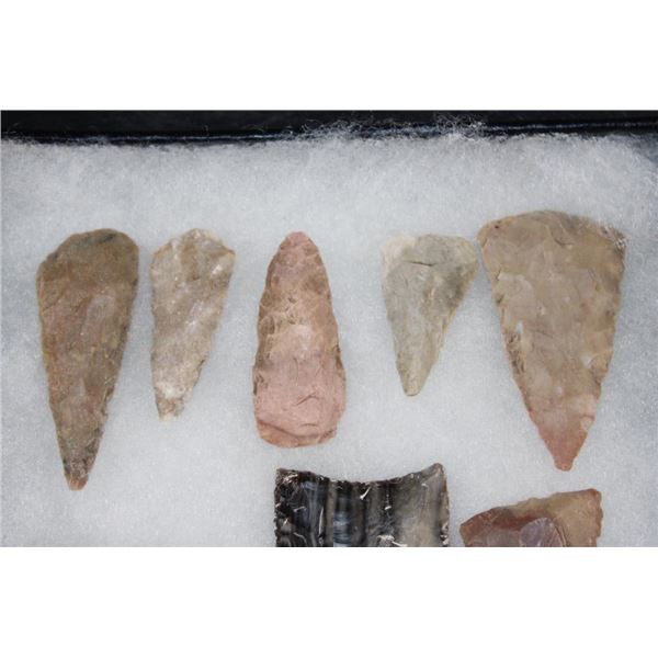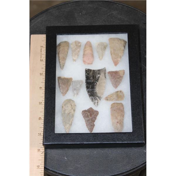13 ARROWHEADS. They are displayed in an 8" Wide x 6" Tall Case with Glass. The Arrowheads measure approximately 1.25" Long to 2.75" Long each. (ONE$) ARROWHEADS *While these arrowheads came from an estate of a long-time collector; we as the auction company are not going to get into a protracted discussion about age and authenticity. This collector has no paperwork or COA as to age or authenticity. While we believe the vast majority; if not all to be old; we are wholly uncomfortable with an argument with qualified and unqualified, alleged authorities. All of that to say; we are not guaranteeing age or authenticity*