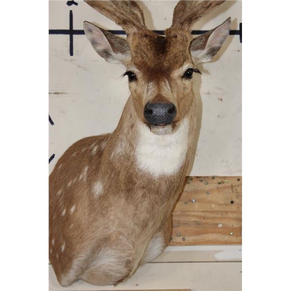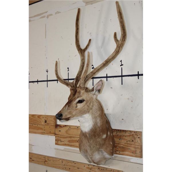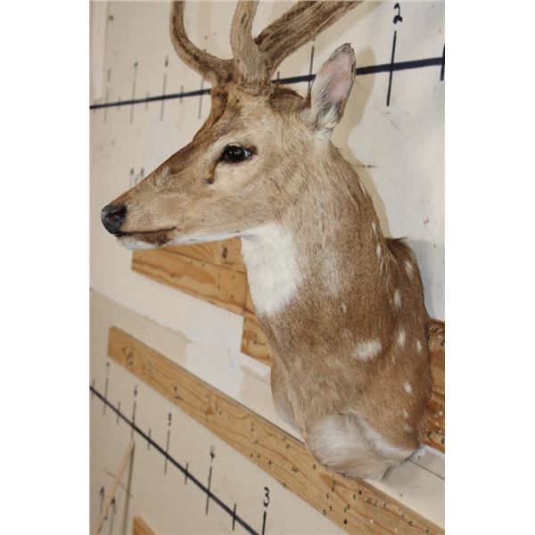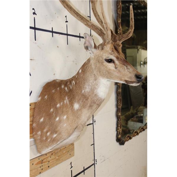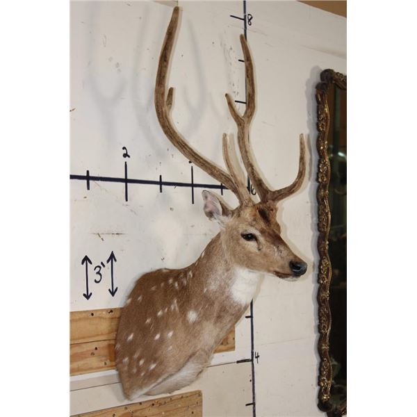 Very Nice and Clean AXIS DEER Shoulder Mount in Velvet. It has a 19.25" Spread and is in Very Good Condition. TAXIDERMY