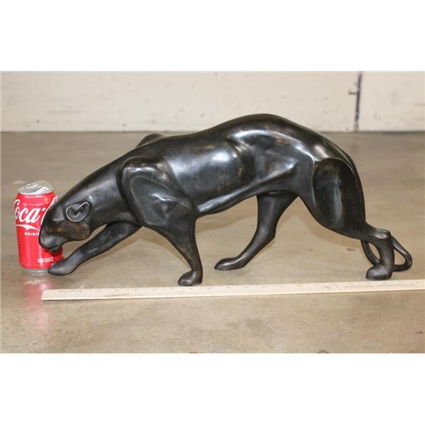 Bronze PANTHER Sculpture. It measures 21.5" Long x 4.5" Wide x 9.75" Tall. The Total Weight is 10 lbs 11 oz. COLLECTIBLE BRONZE ART SCULPTURES AND STATUES
