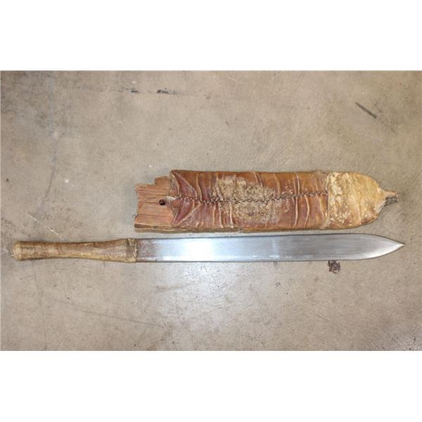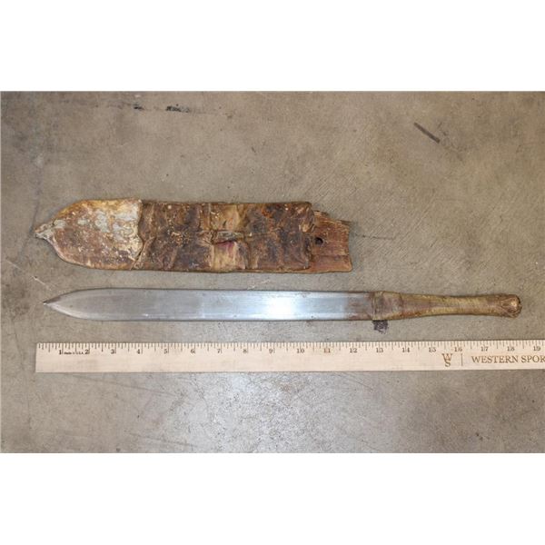 Antique African Maasai KNIFE with a Rawhide SHEATH. The Knife measures 18.5" Long. COLLECTIBLE AFRICAN ARTIFACTS